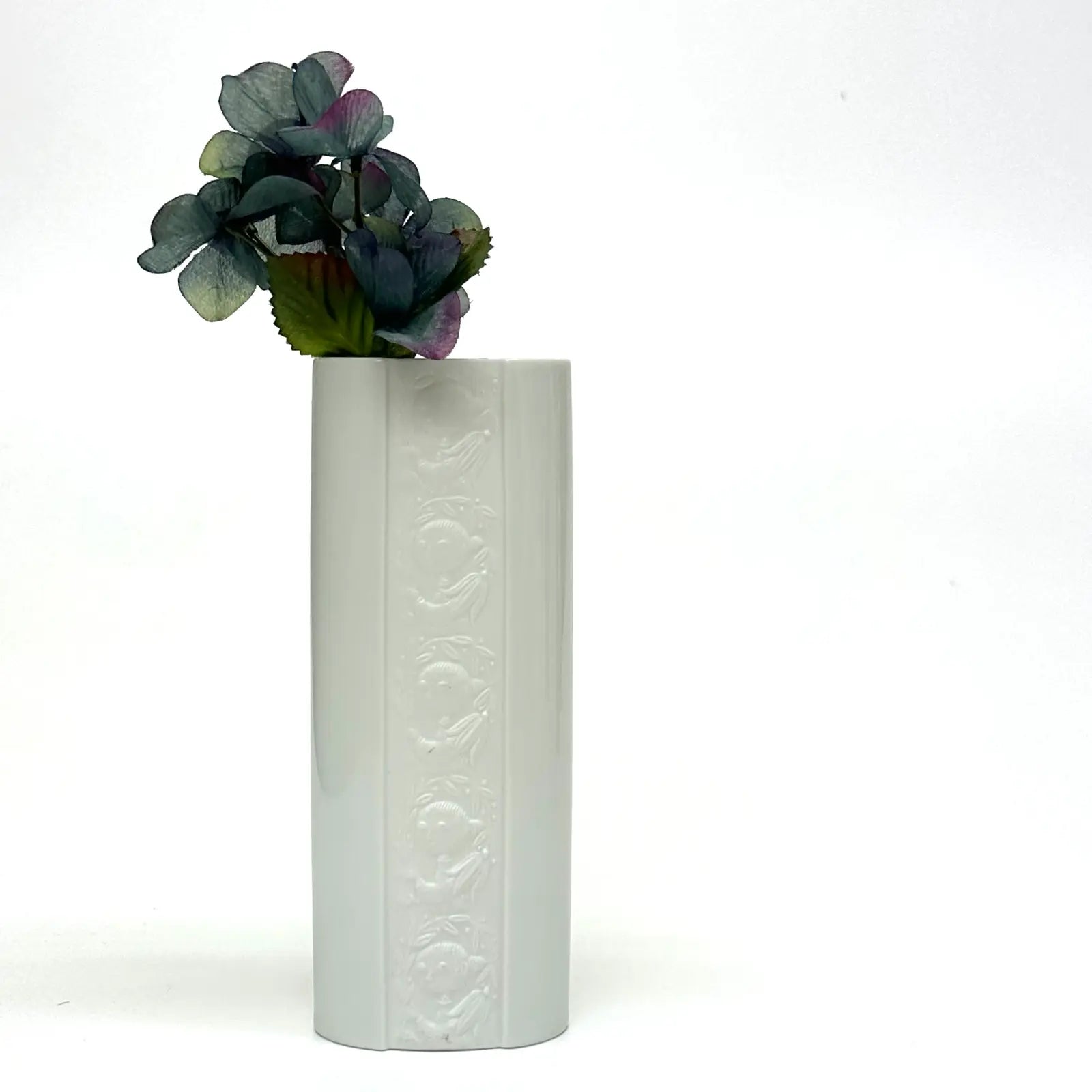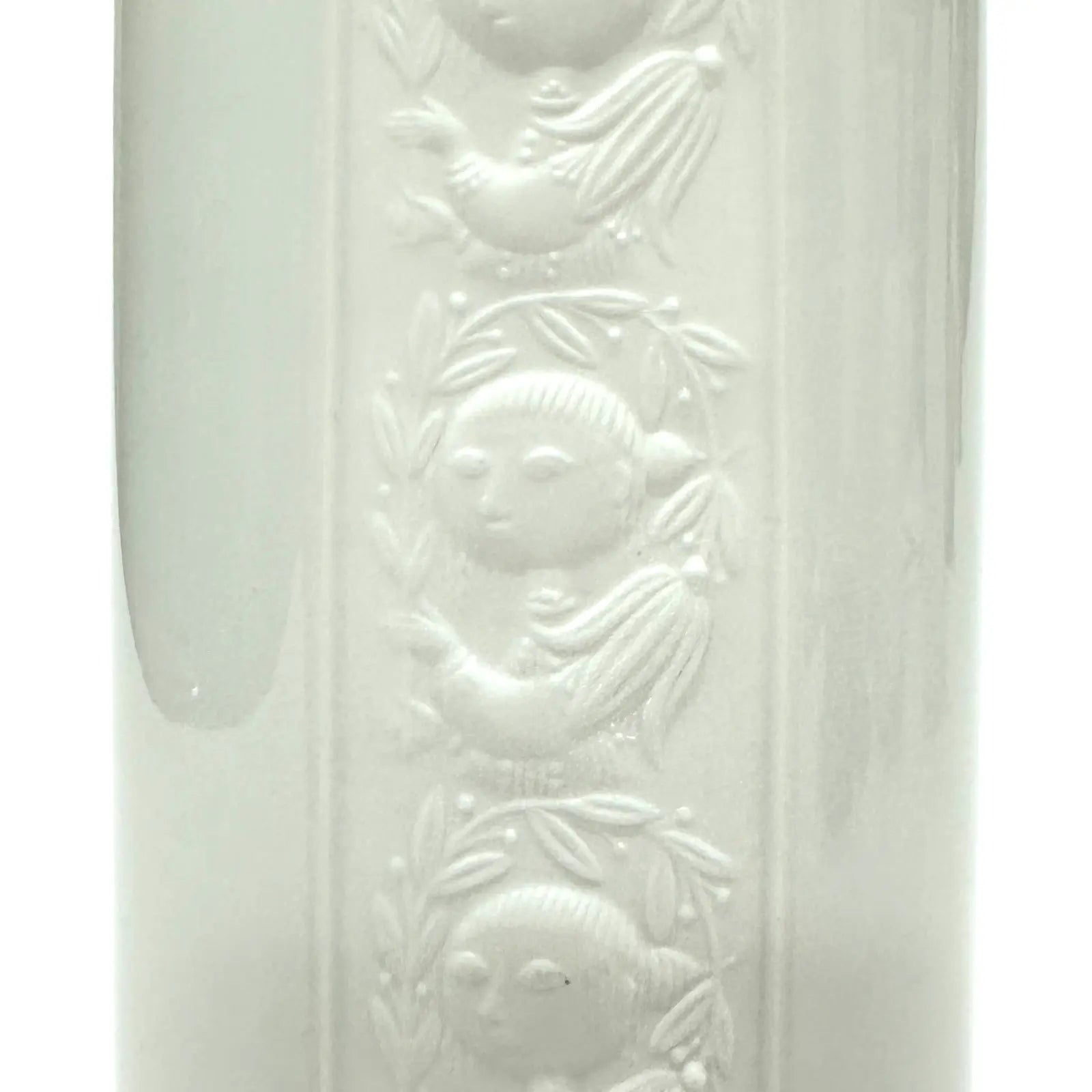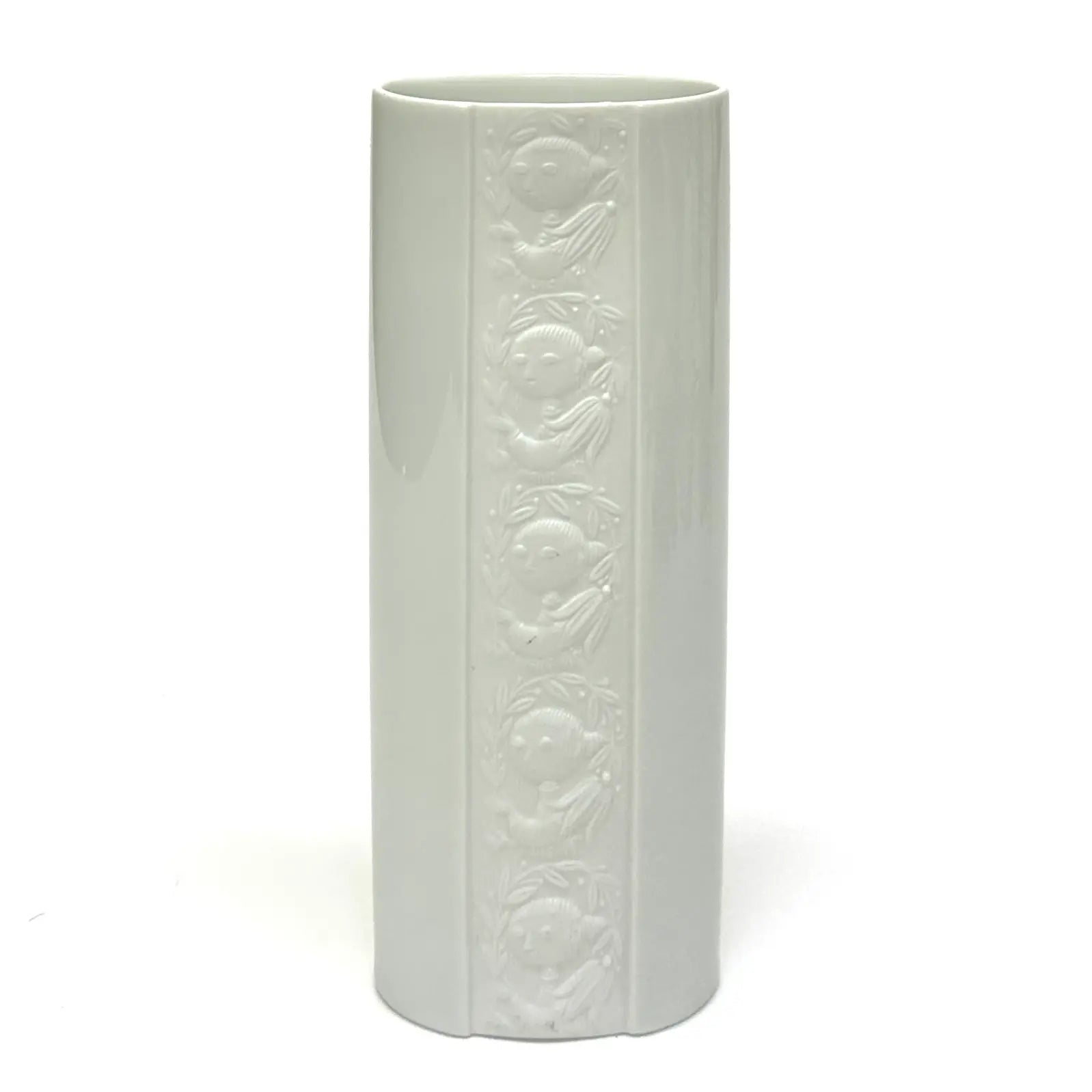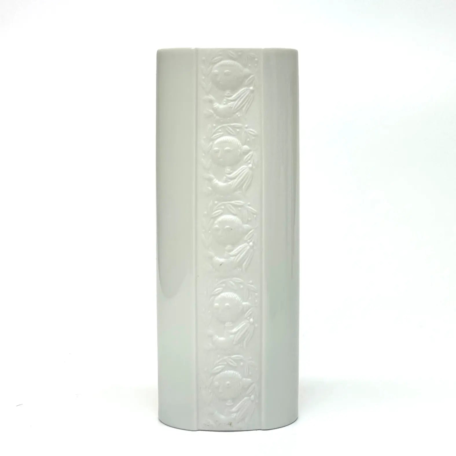 A gorgeous and rare matte & gloss finish vintage white porcelain vase by Bjorn Wiinblad for Rosenthal Studio-Linie. This oval, tall vase features a gorgeous matte, textured portrait relief. In excellent condition.