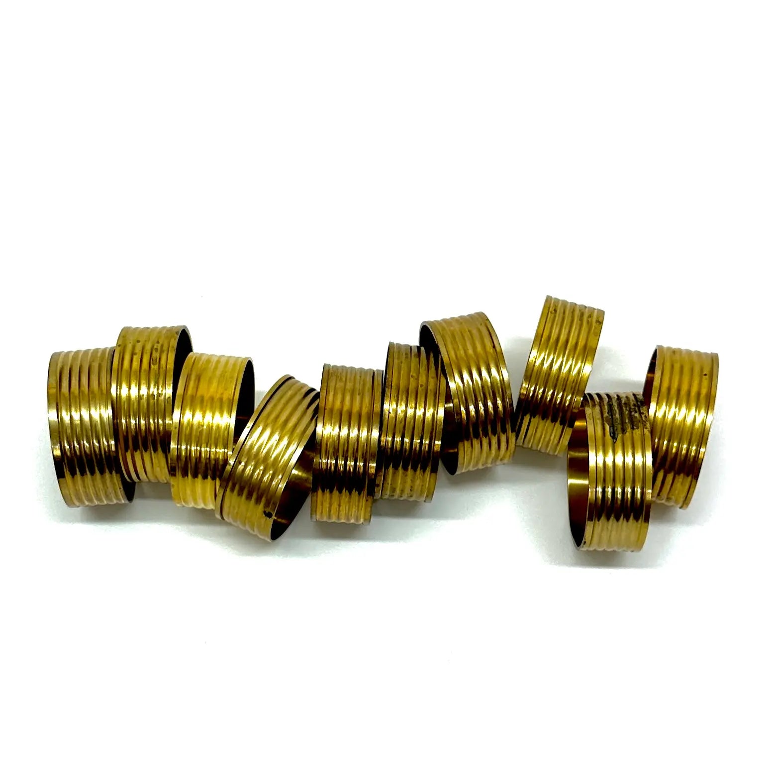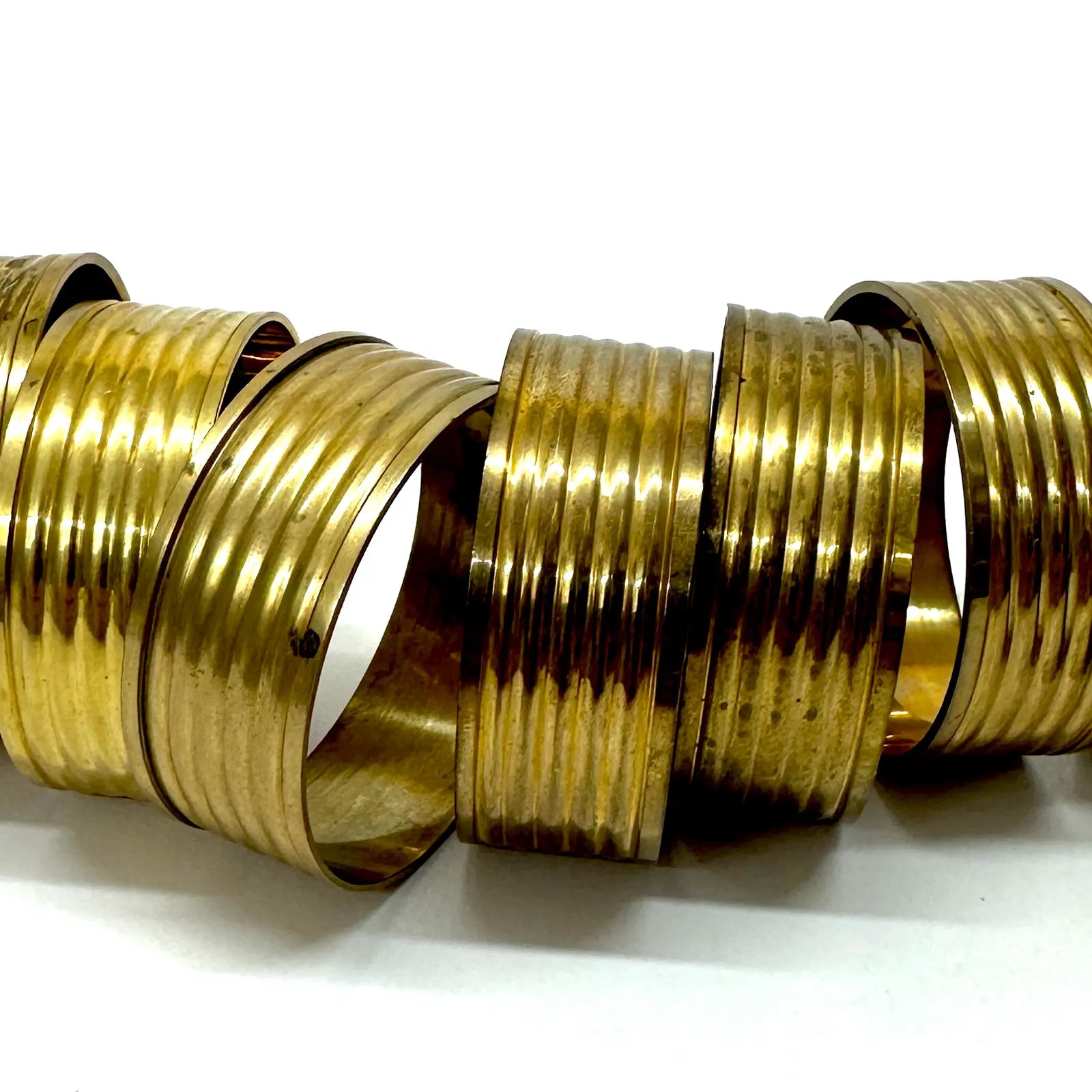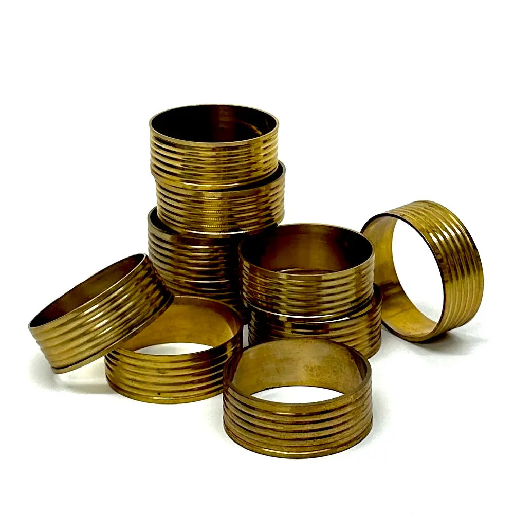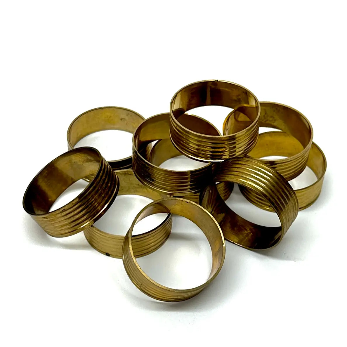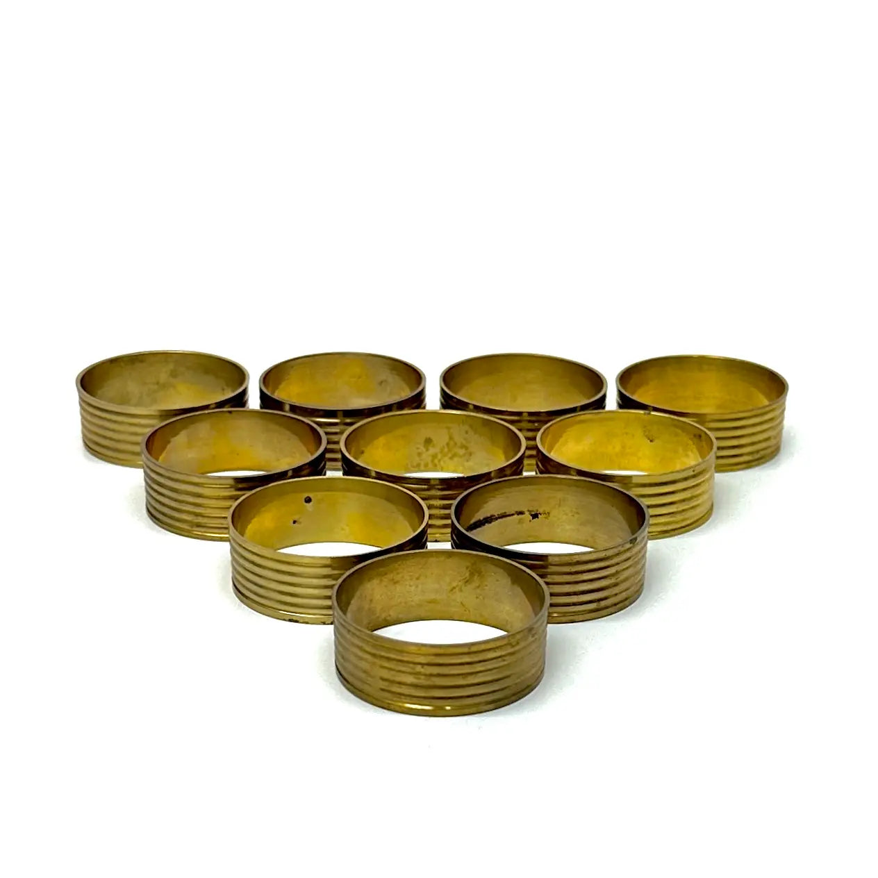 This is a gorgeous set of timeless, solid brass napkin rings that feature a ribbed design.