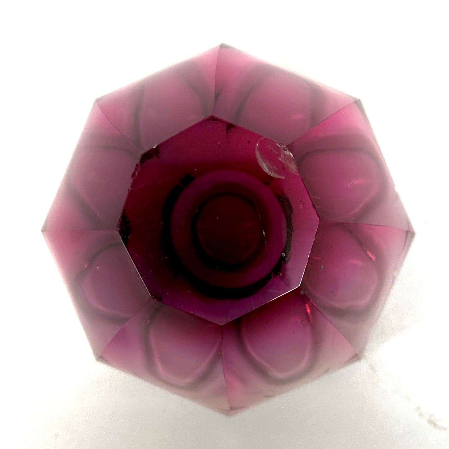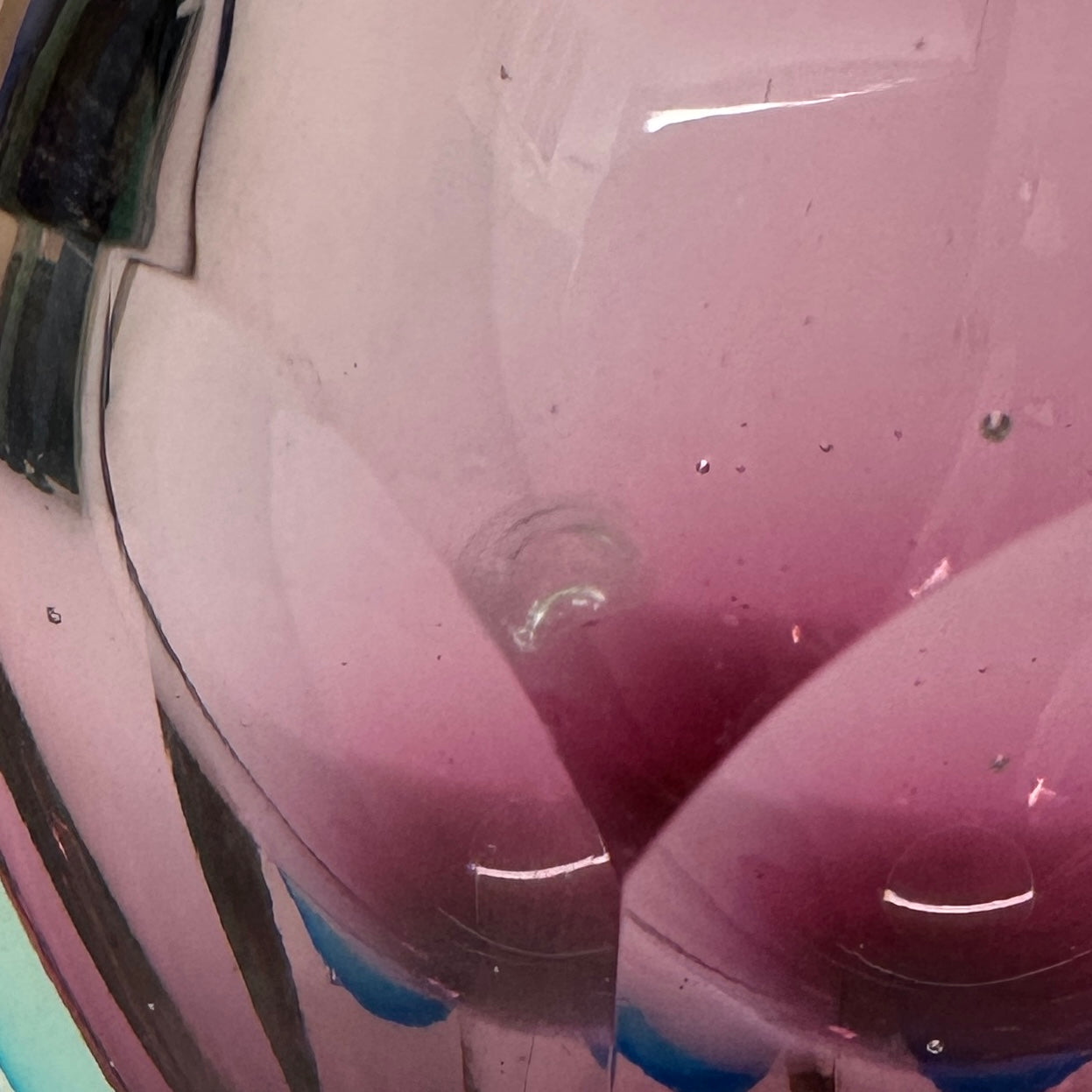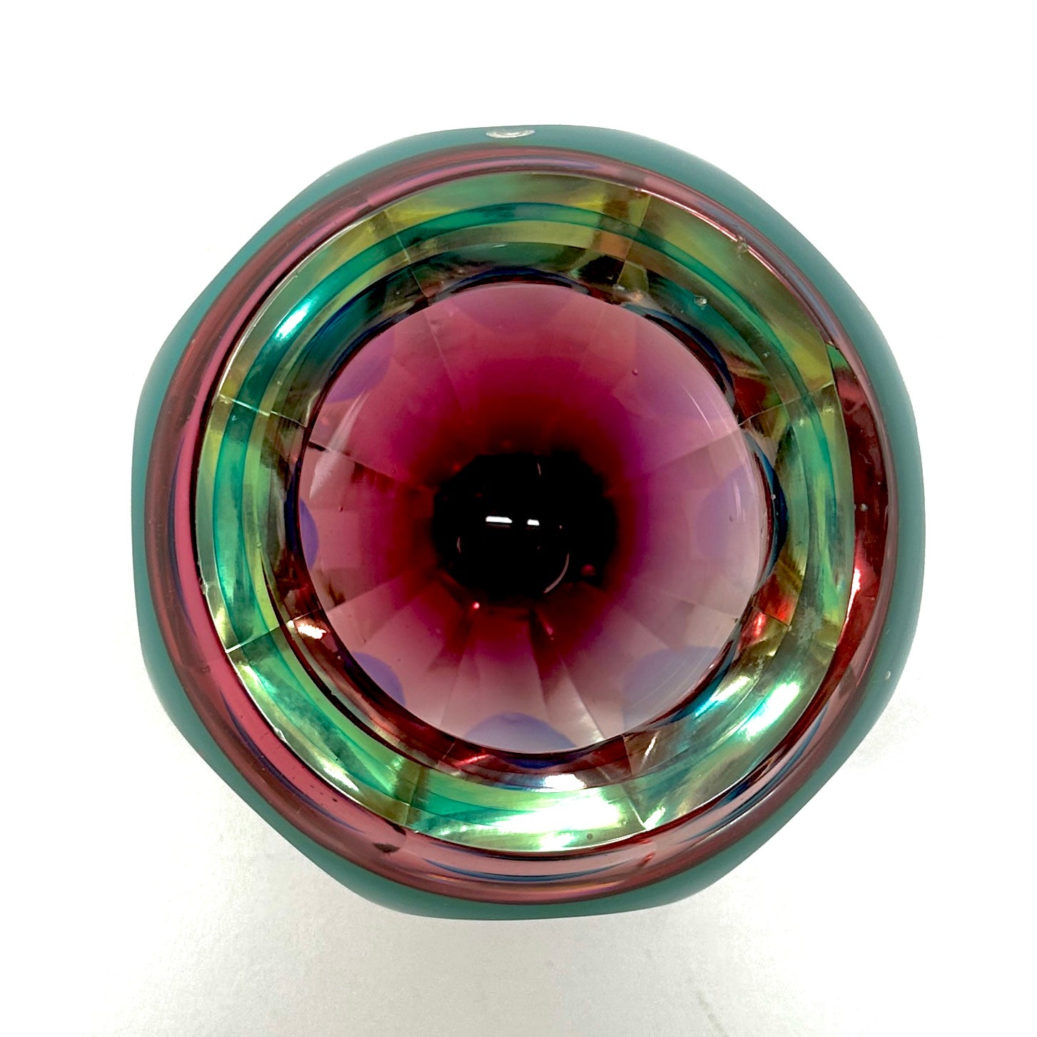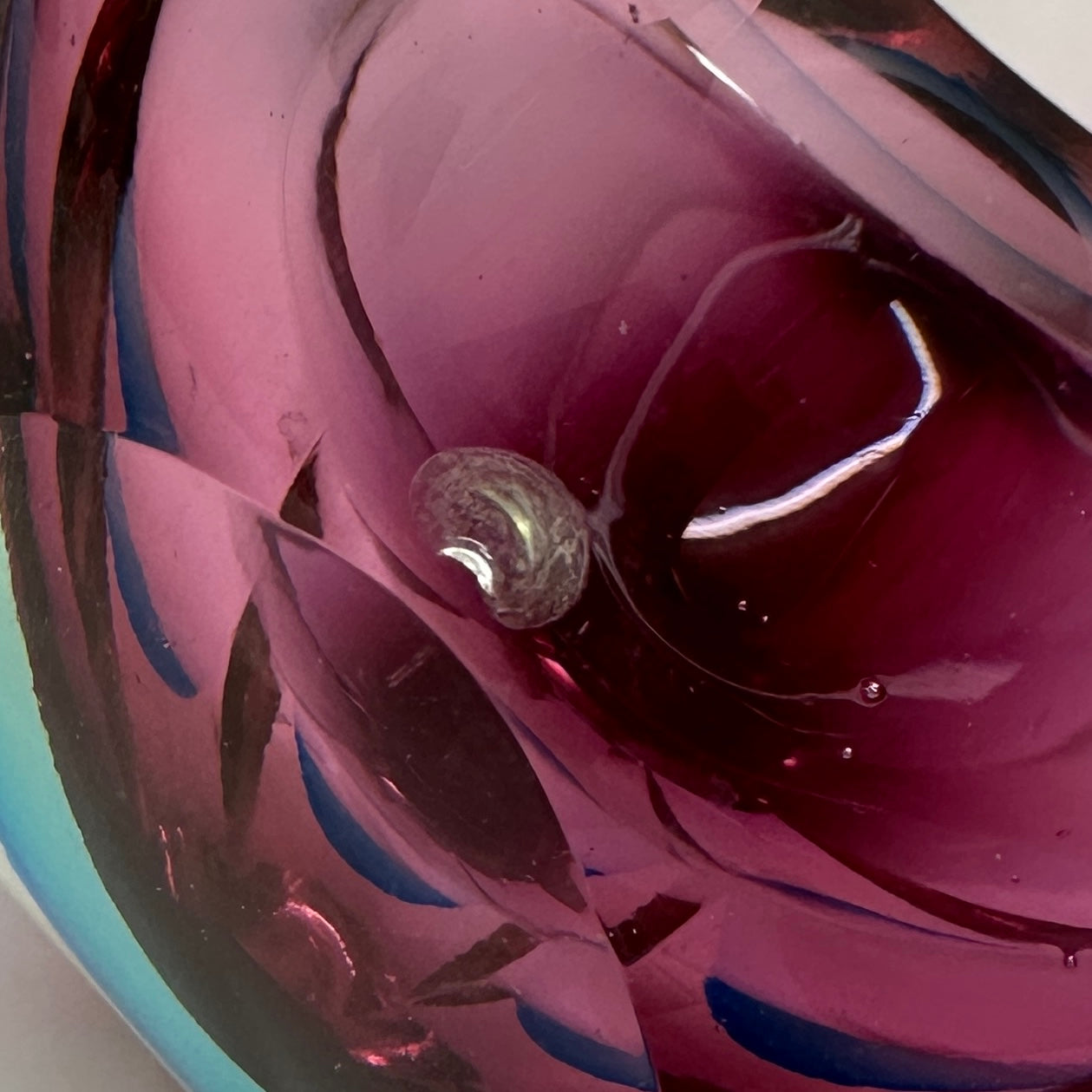 This stunning Murano Sommerso faceted glass vase features a heavy, decorative design in clear amethyst purple and aqua blue hues, attributed to Flavio Poli for Seguso.
