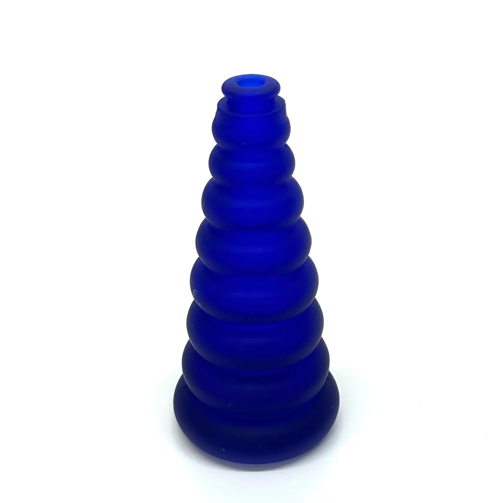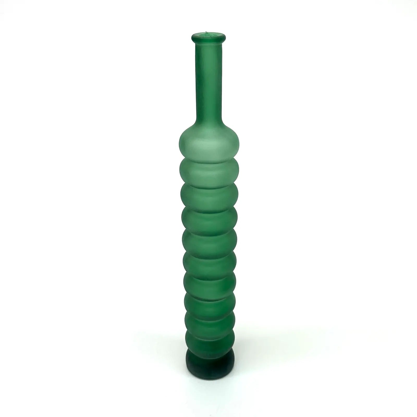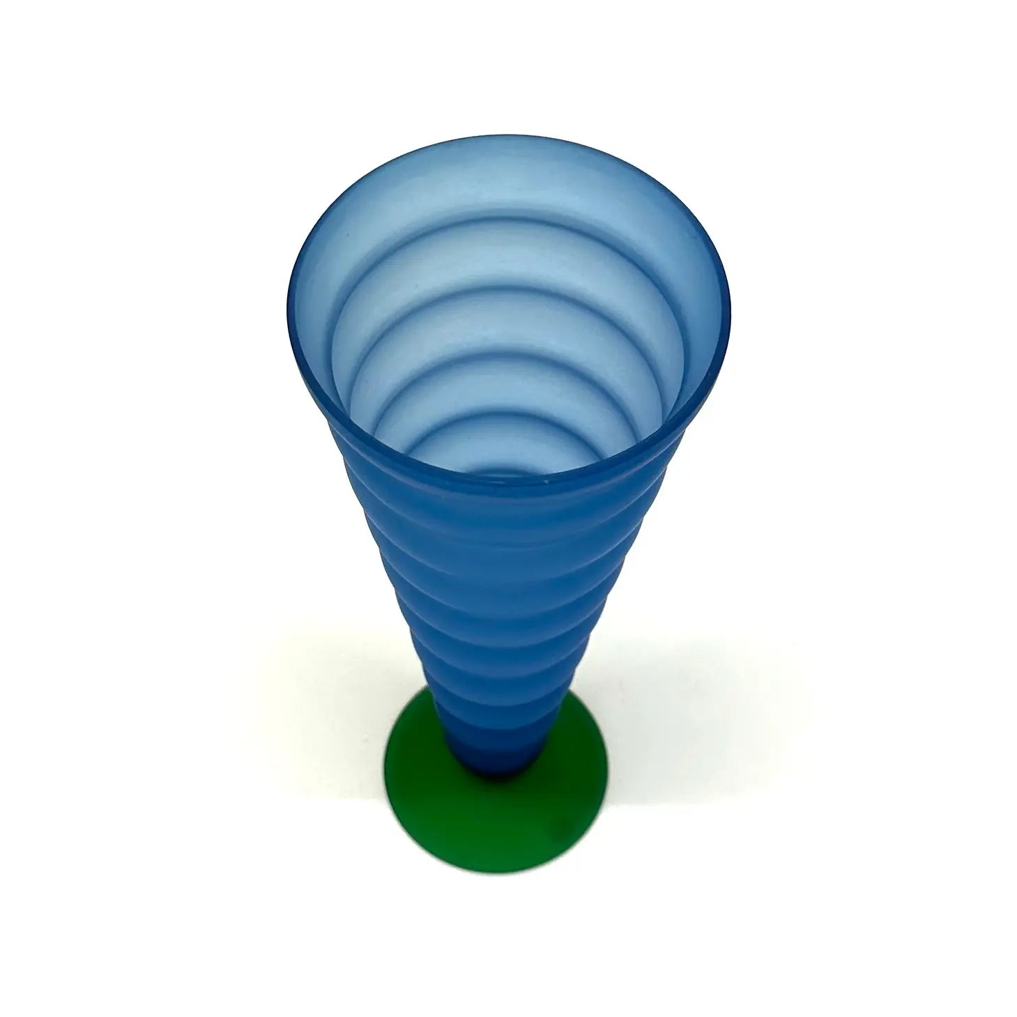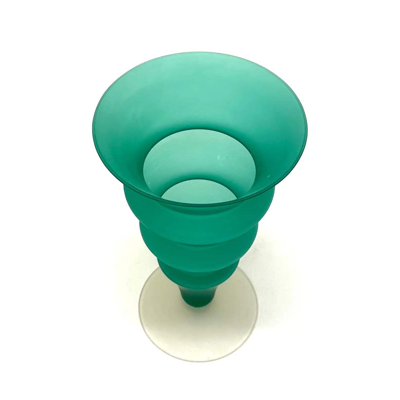 A striking group of Memphis-style curvy cobalt blue and forest green frosted glass vessels from the 1980s.