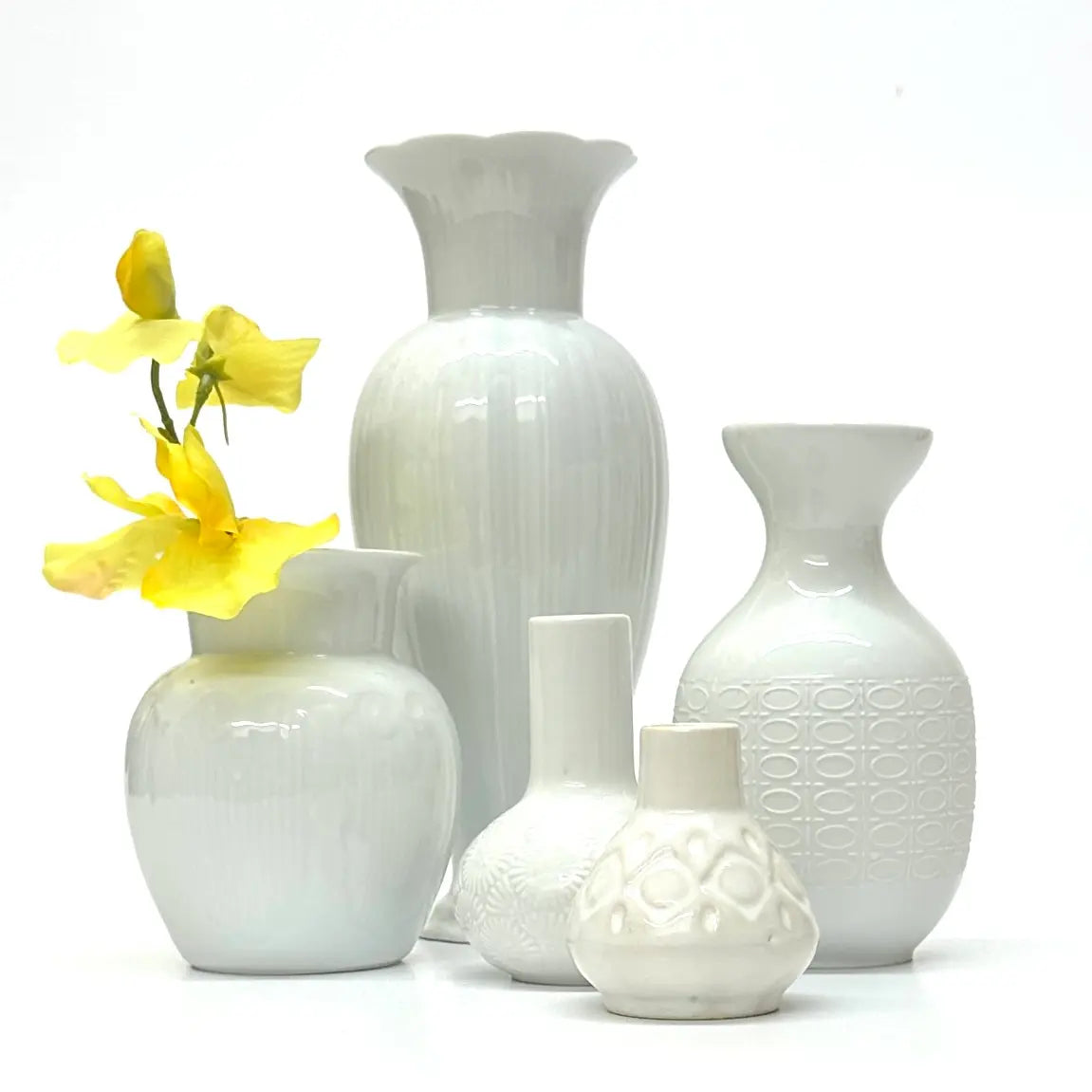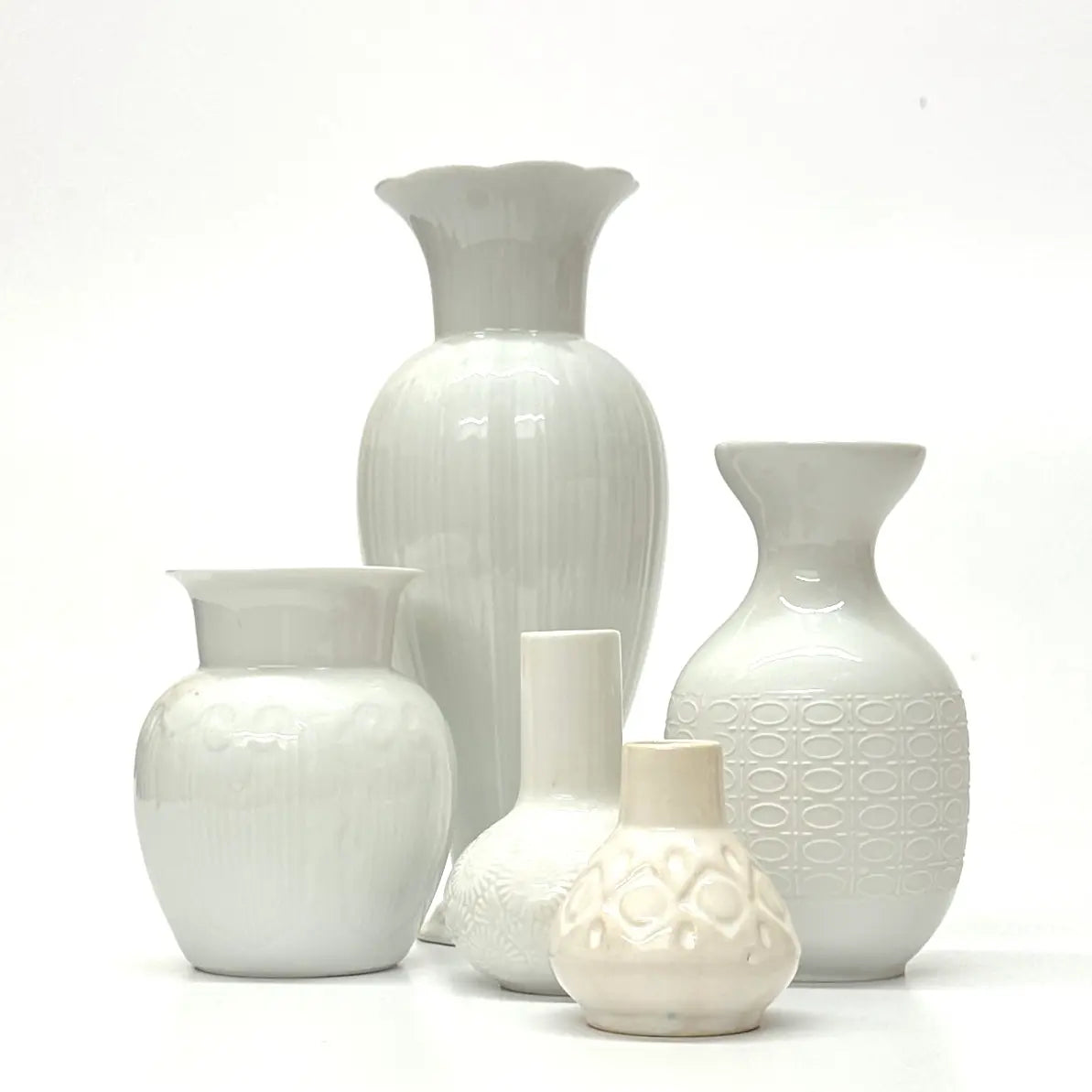 This beautiful set of white textured ceramic vases features soft curved and rounded edges. Featuring a variety of German and Japanese brands.
