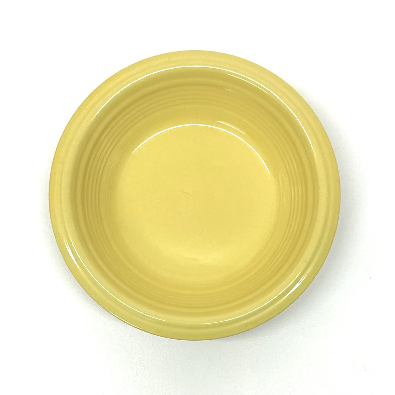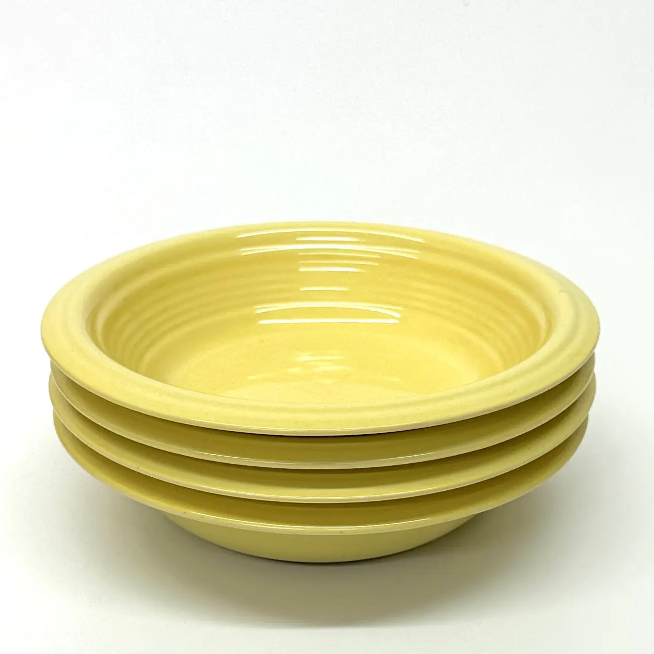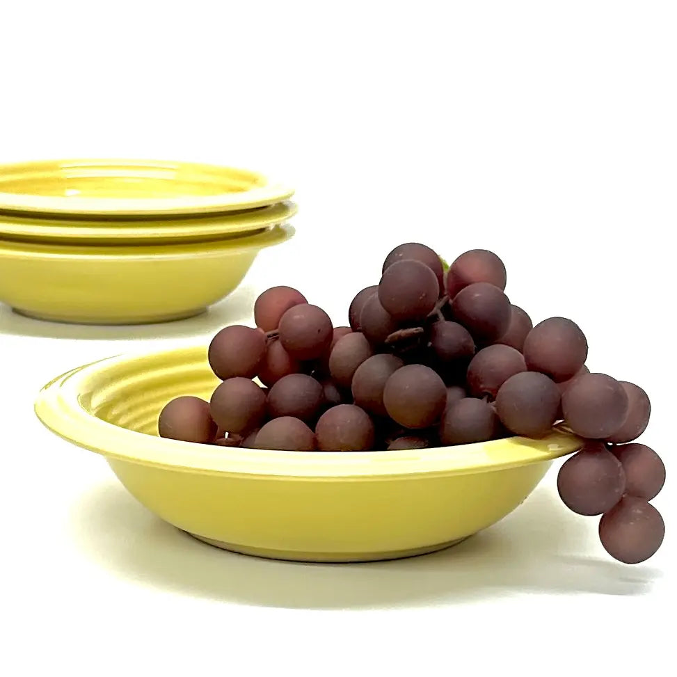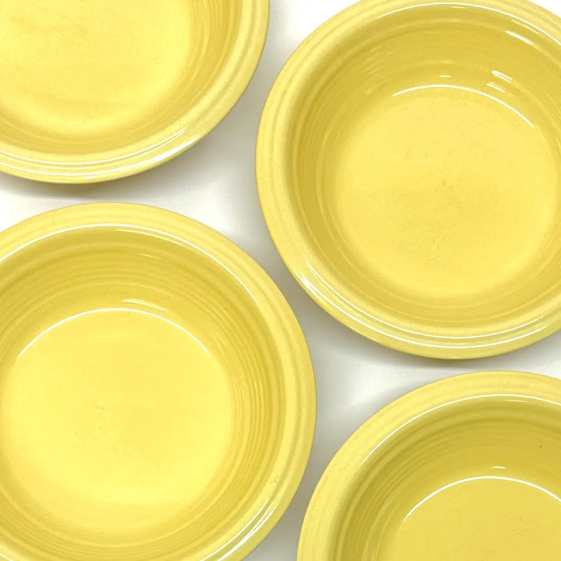 This is a gorgeous mid-century set of lemon-yellow ceramic soup or breakfast bowls by Gibson USA.
