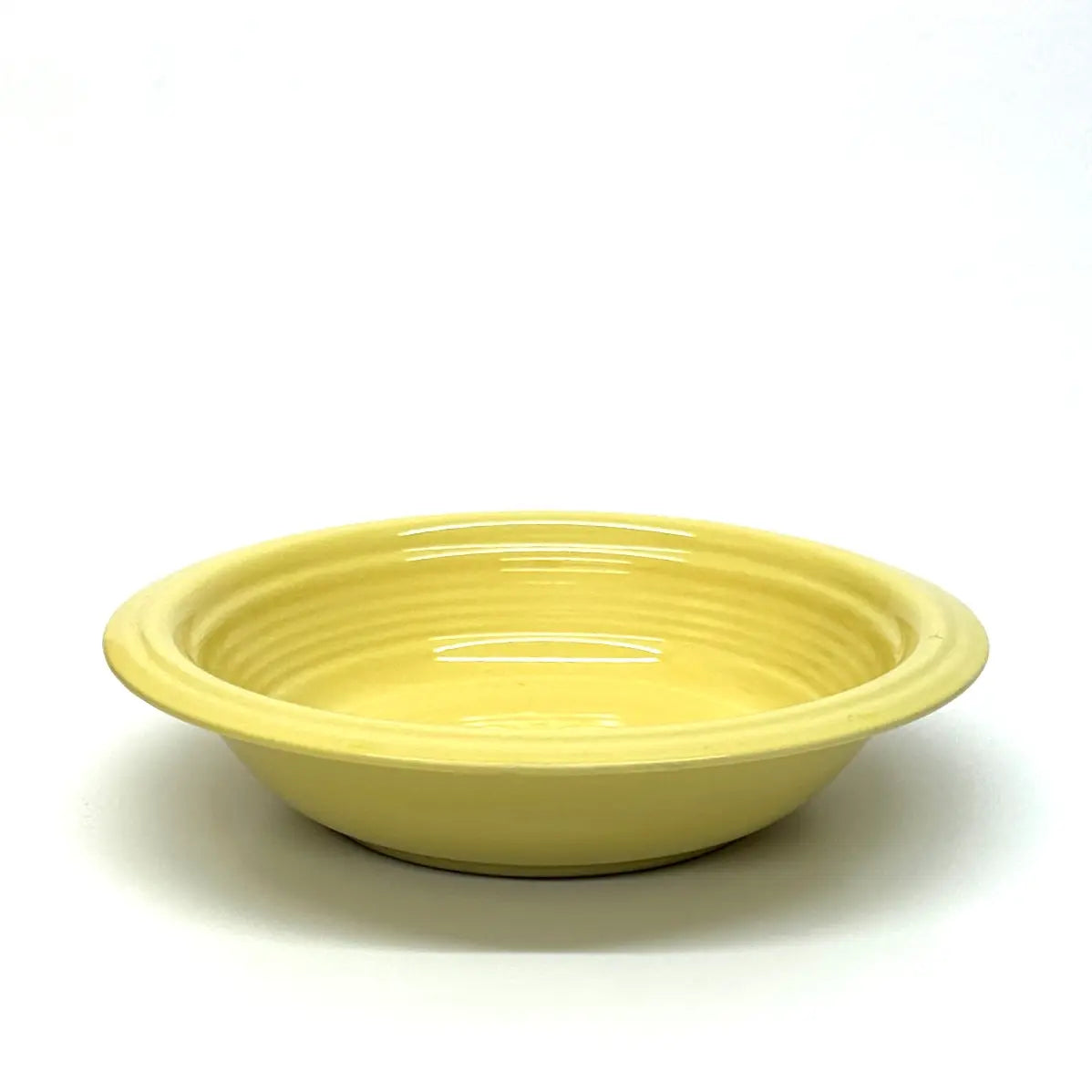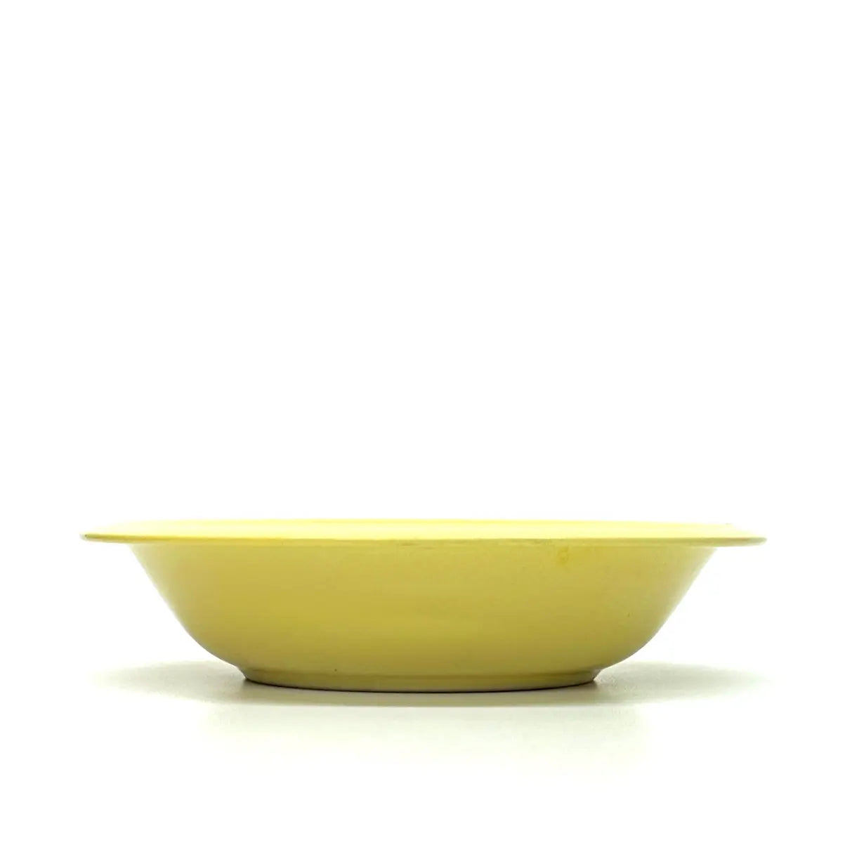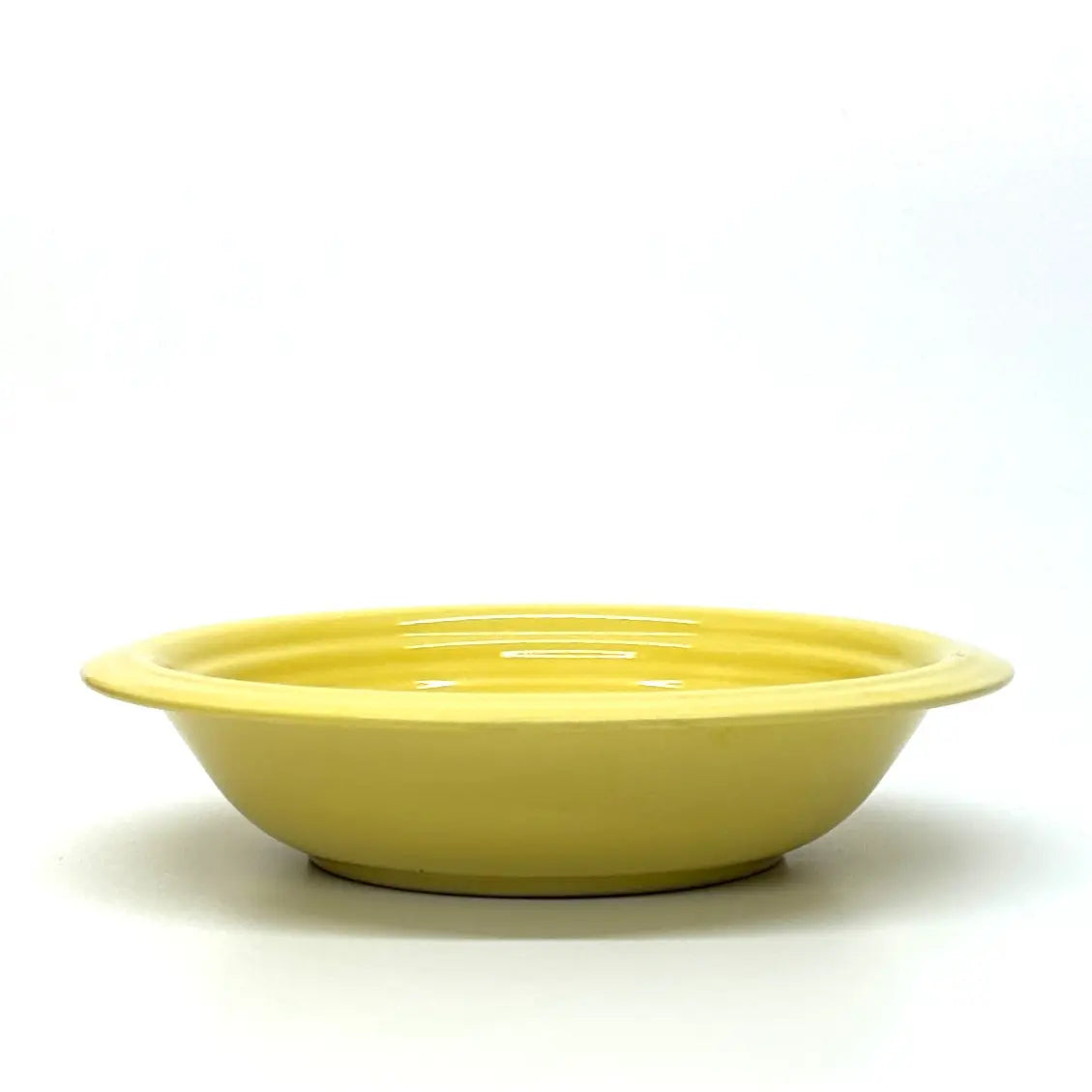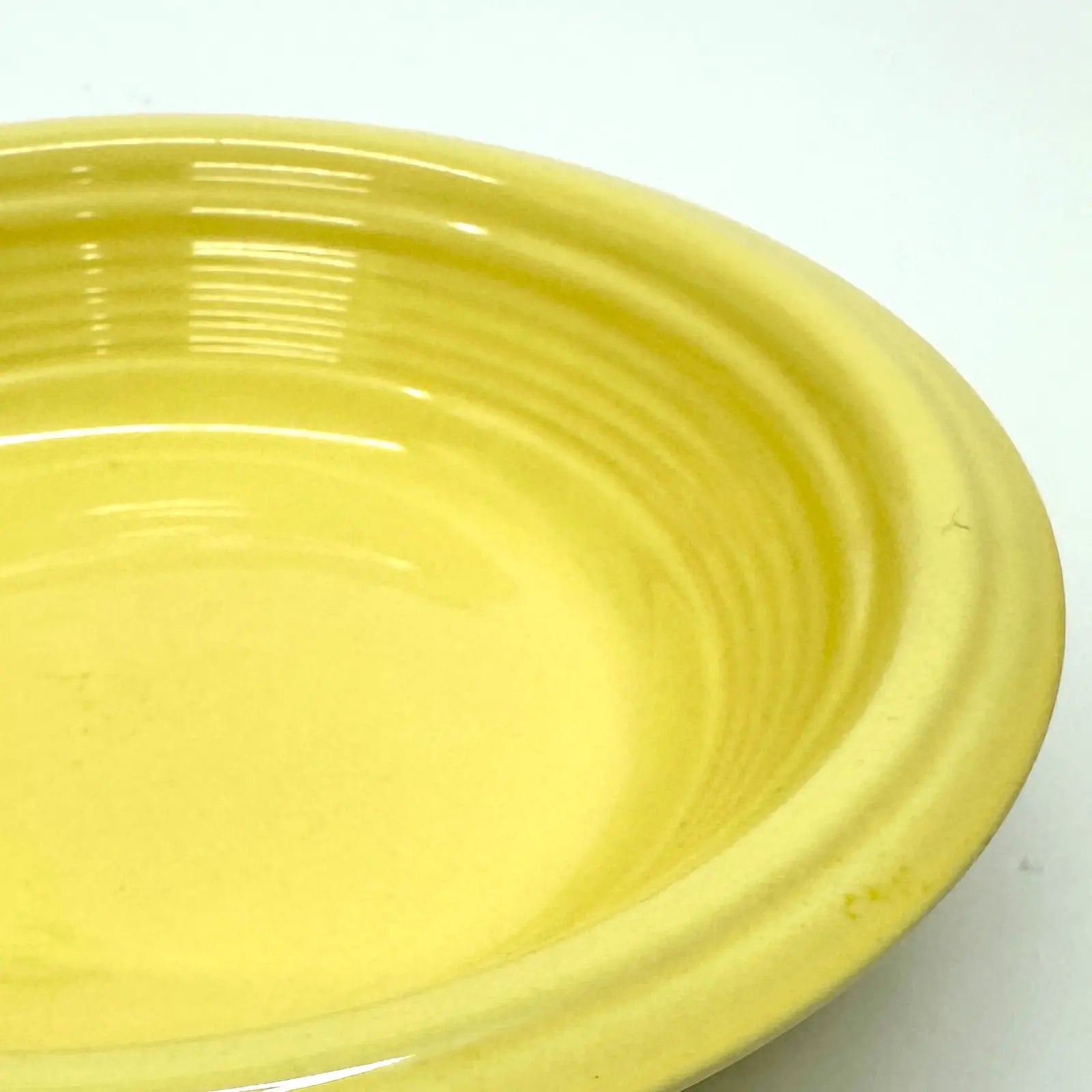 This is a gorgeous mid-century set of lemon-yellow ceramic soup or breakfast bowls by Gibson USA.