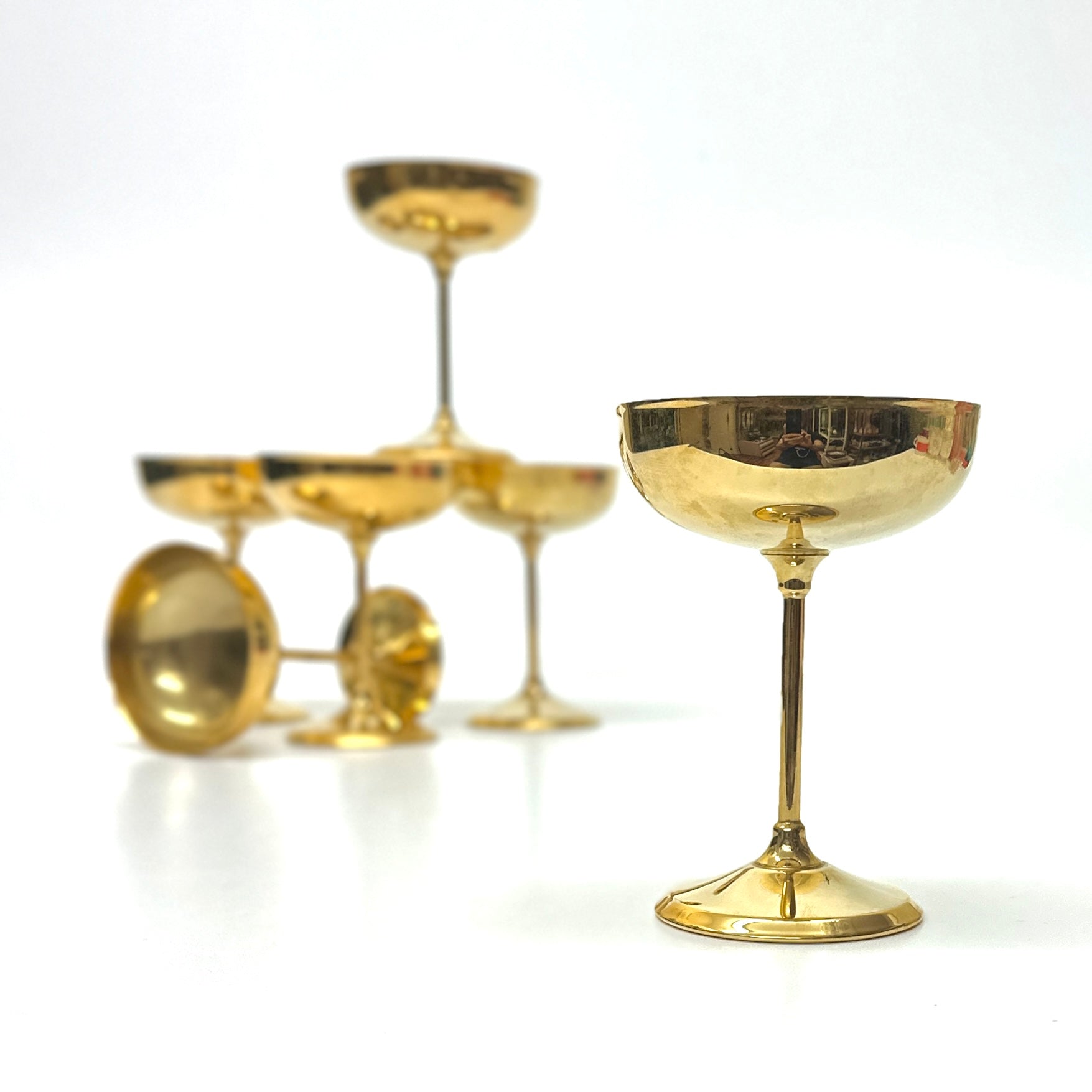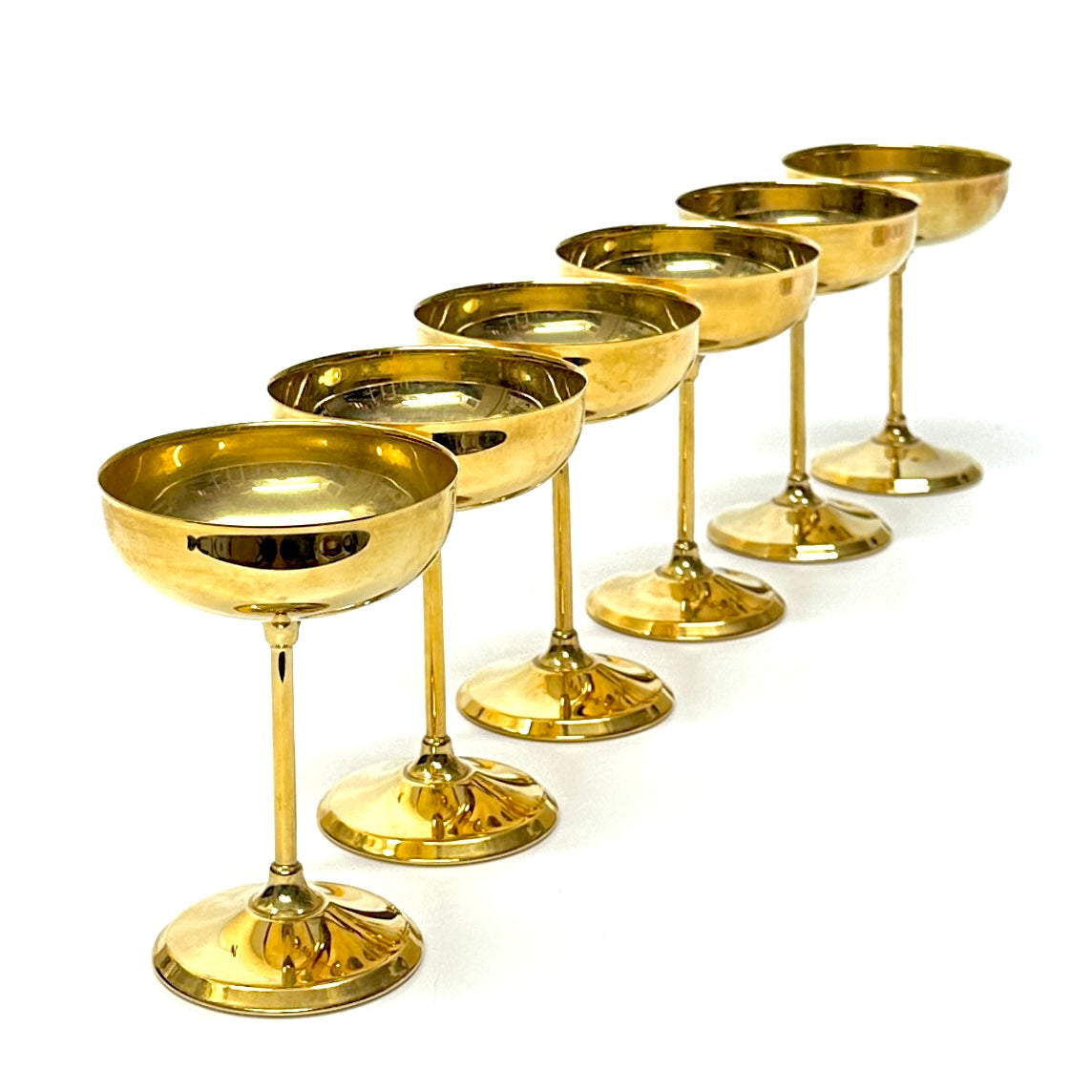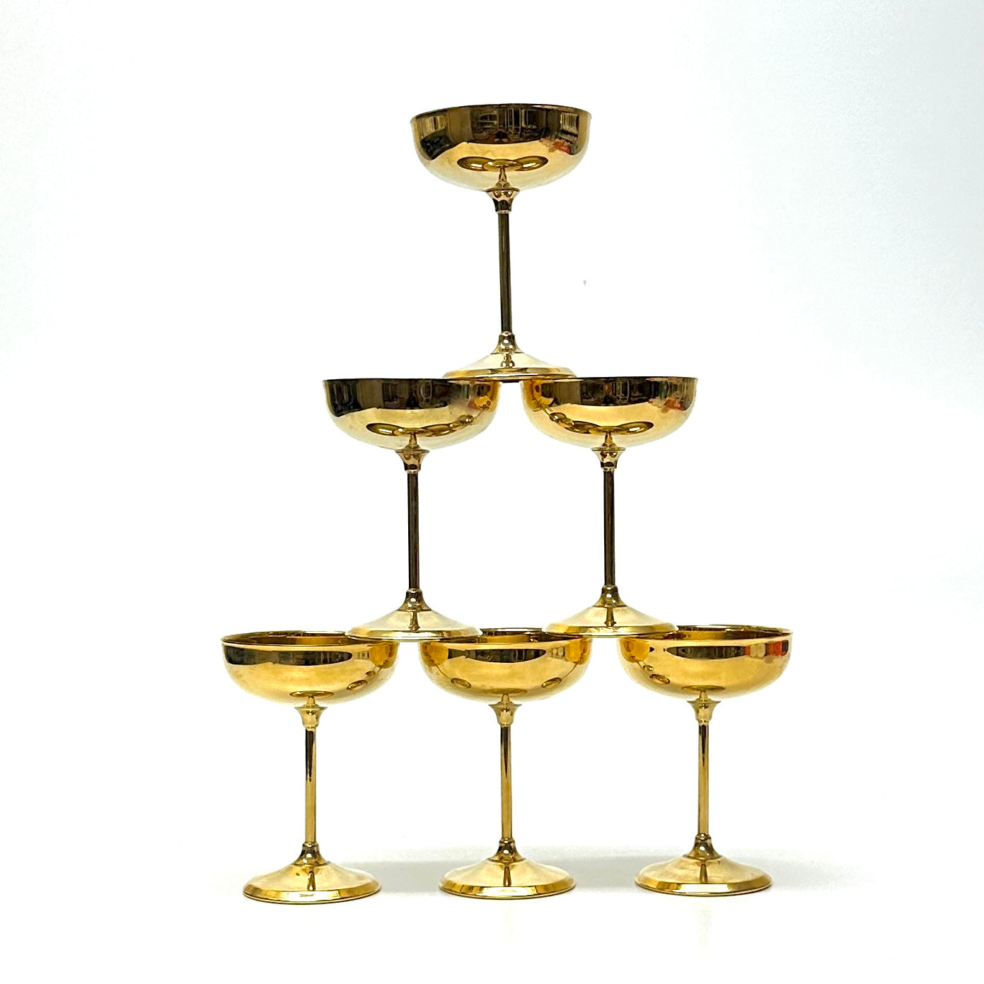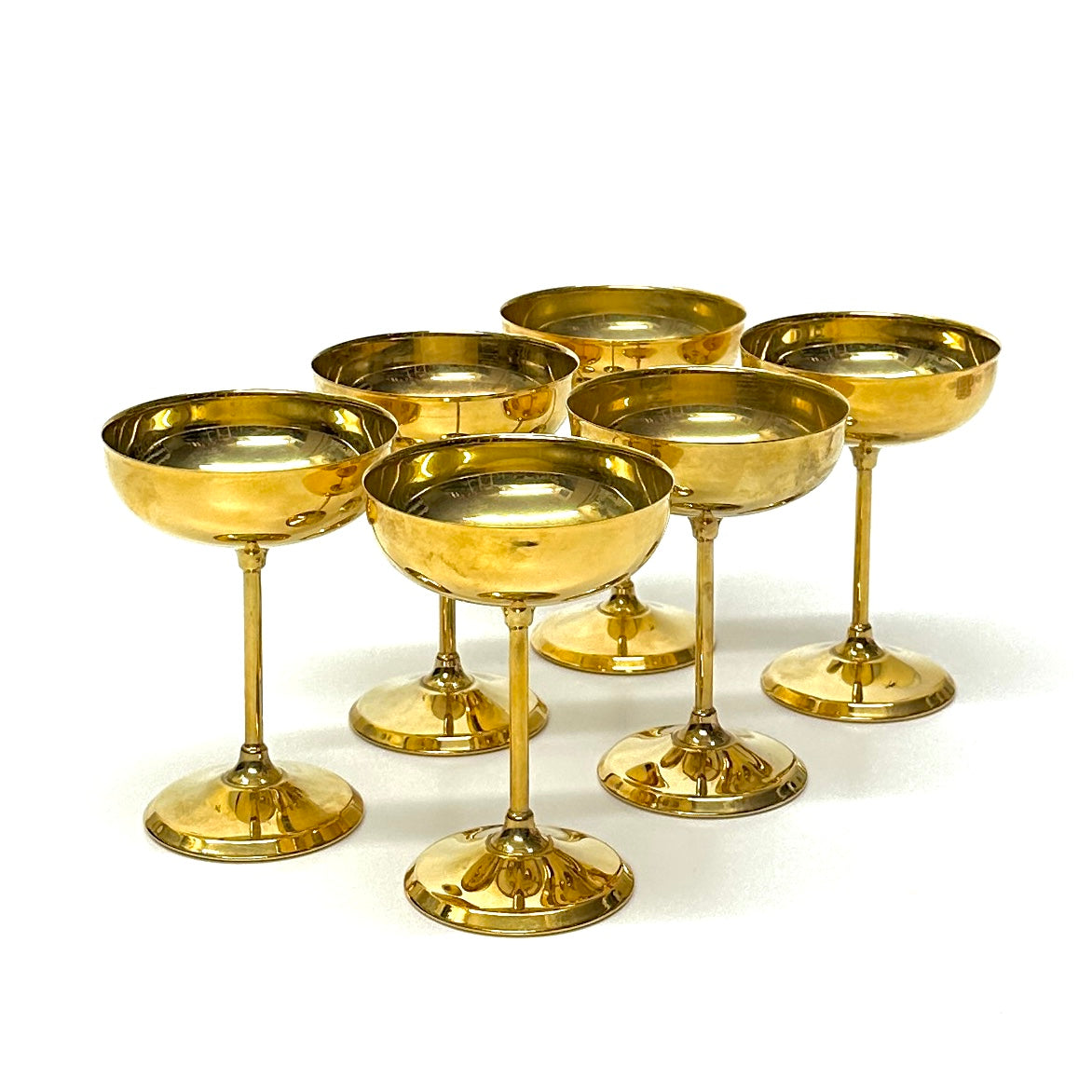Gold-plated champagne coupes, set of 6.