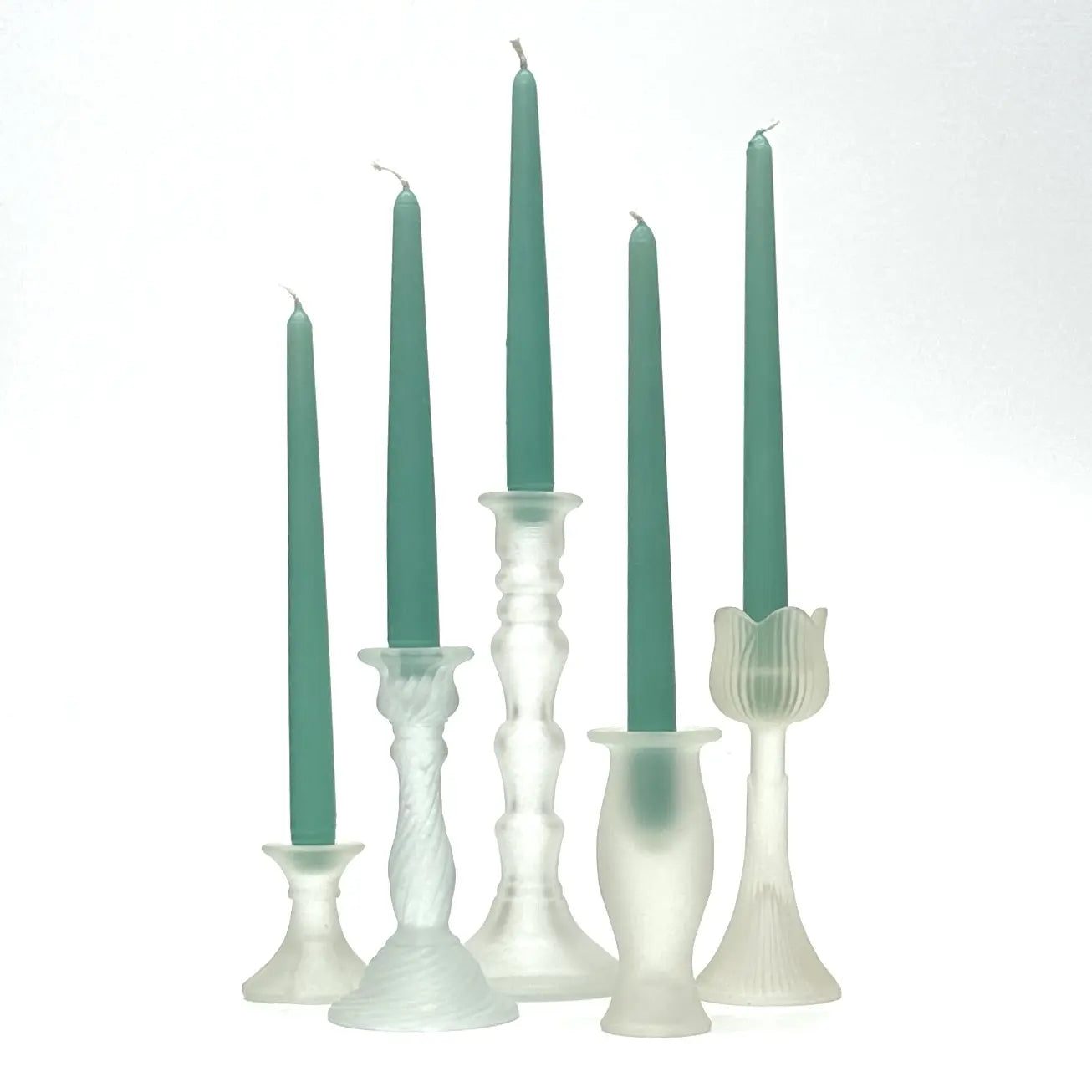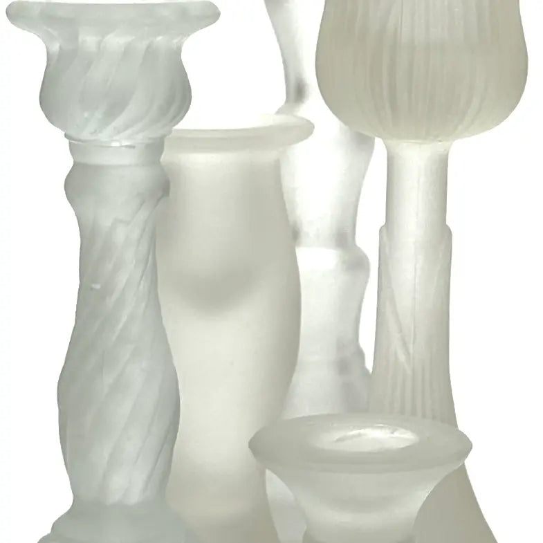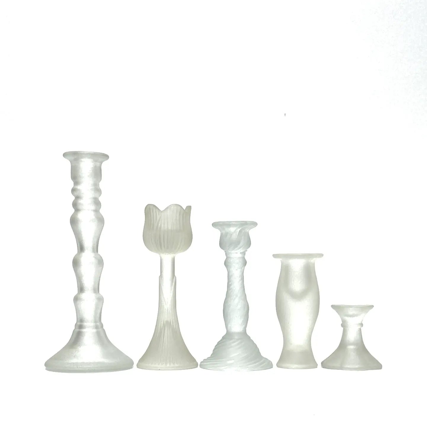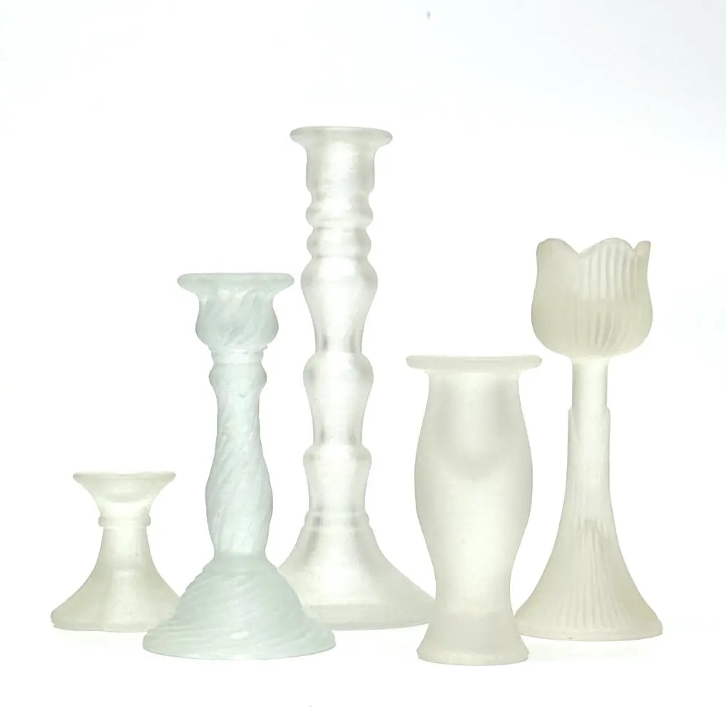 An eclectic group of frosted clear glass candle holders from the mid-20th century.