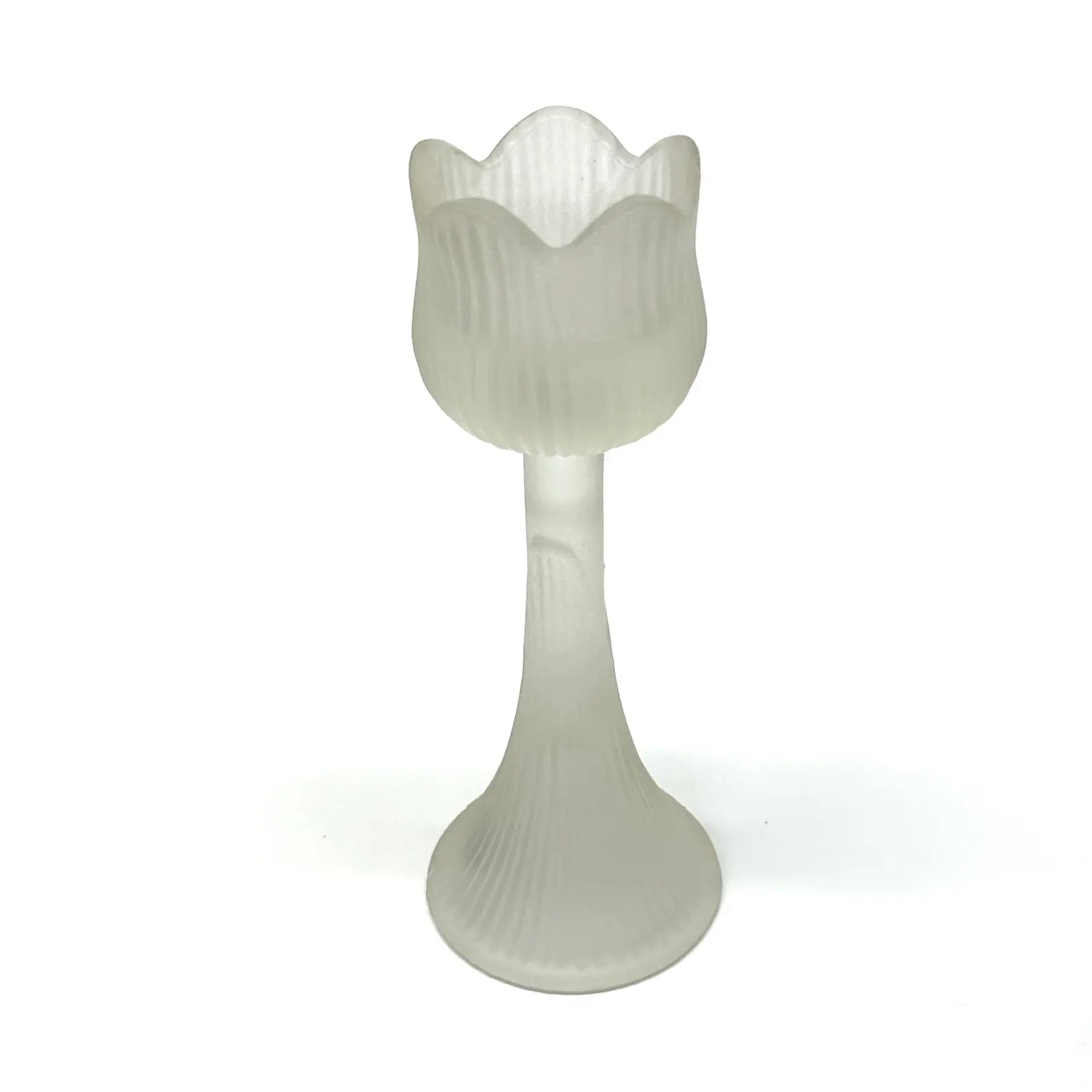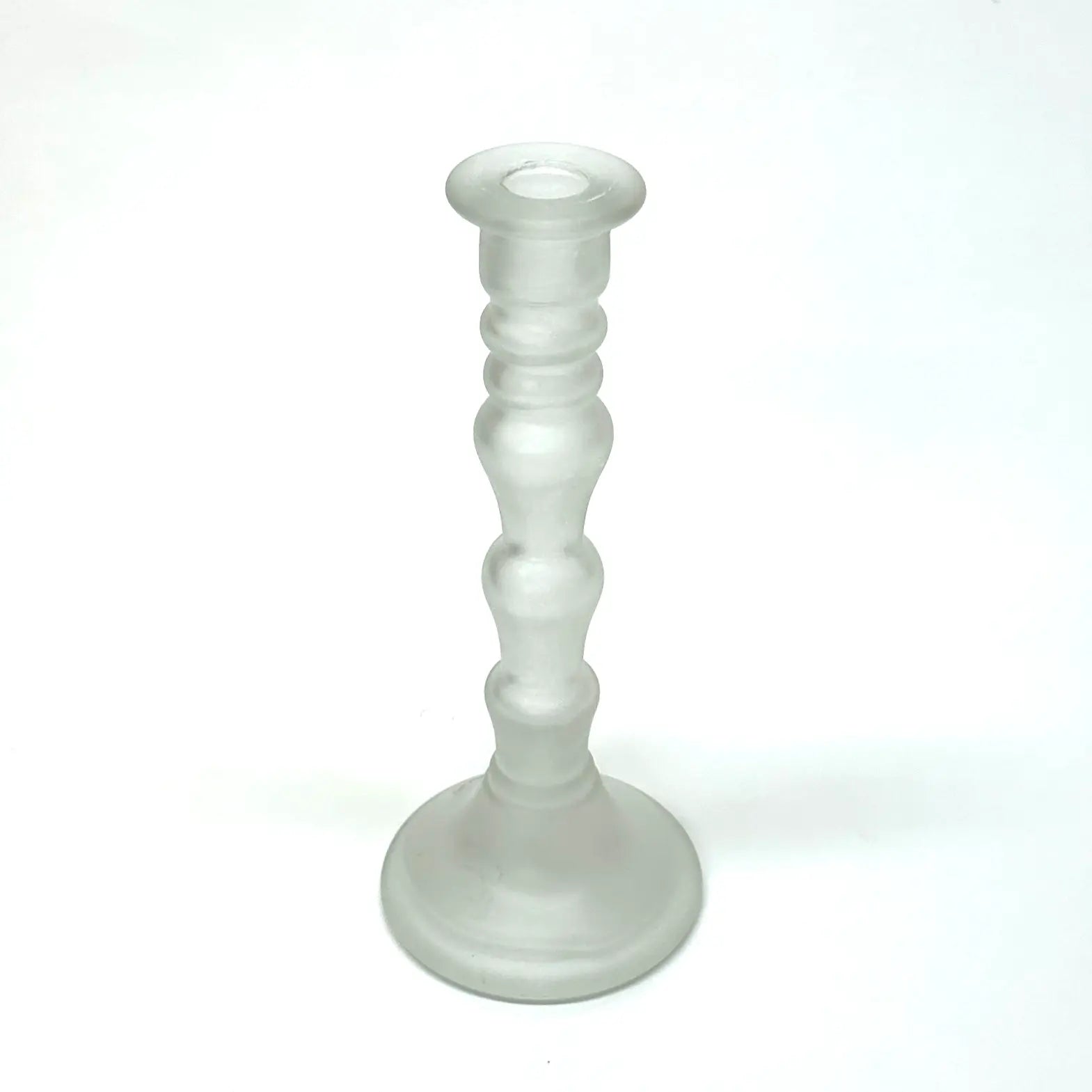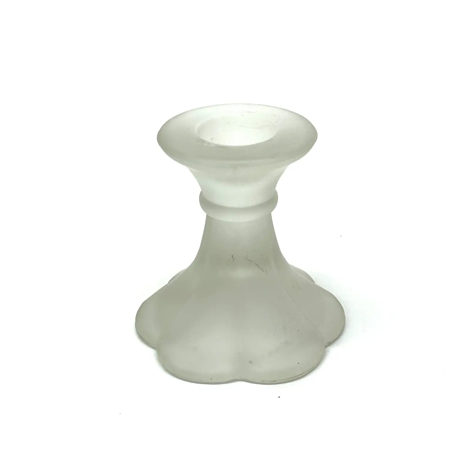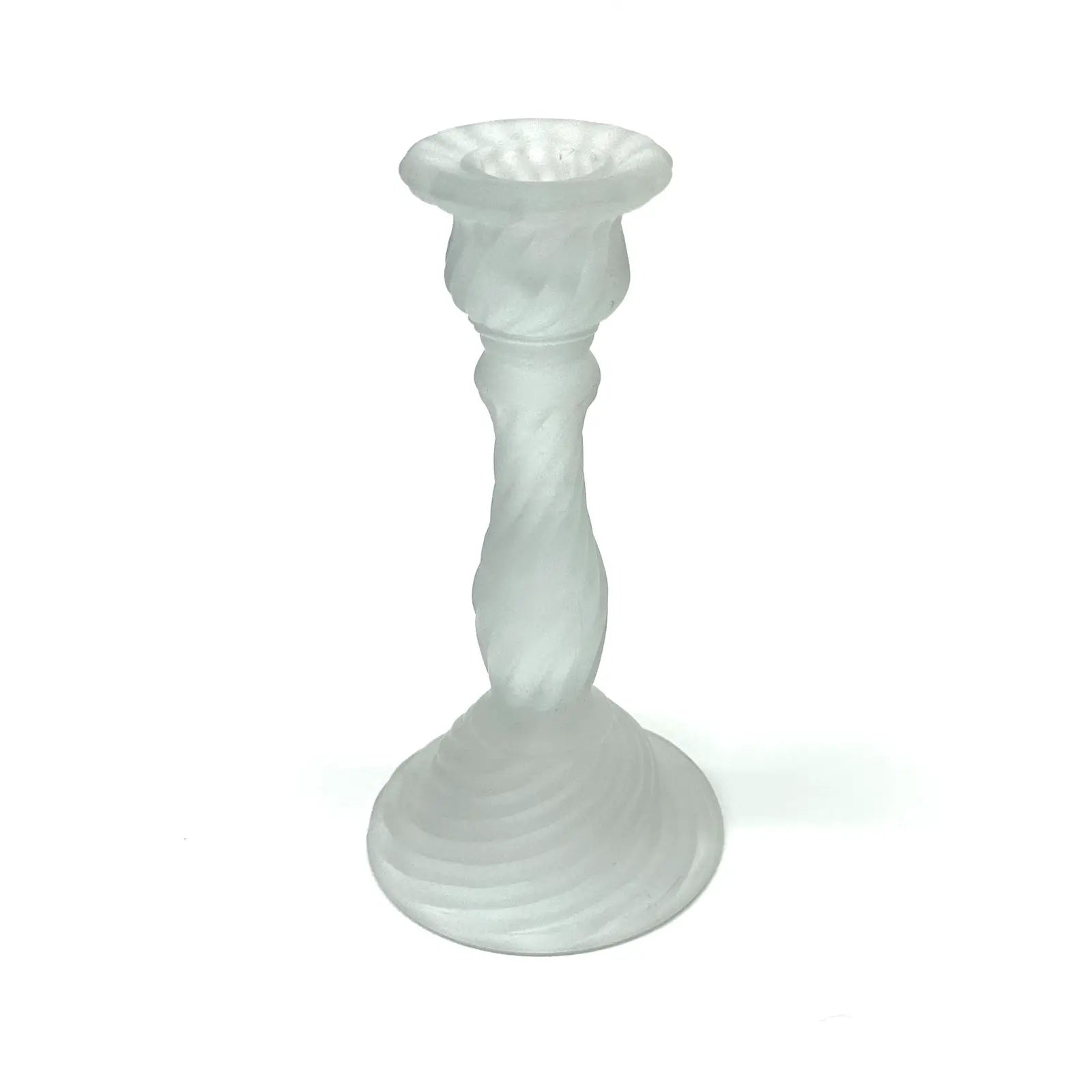 An eclectic group of frosted clear glass candle holders from the mid-20th century.