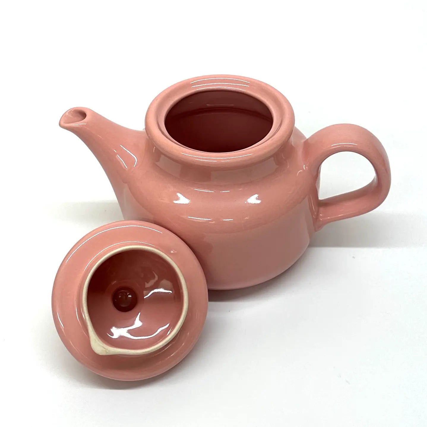 - Mid-century blush pink short rounded teapot. 8.25"W x 4.5"H