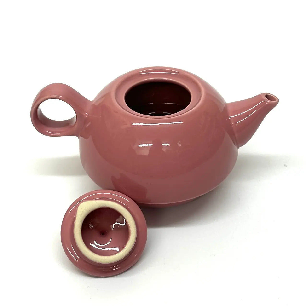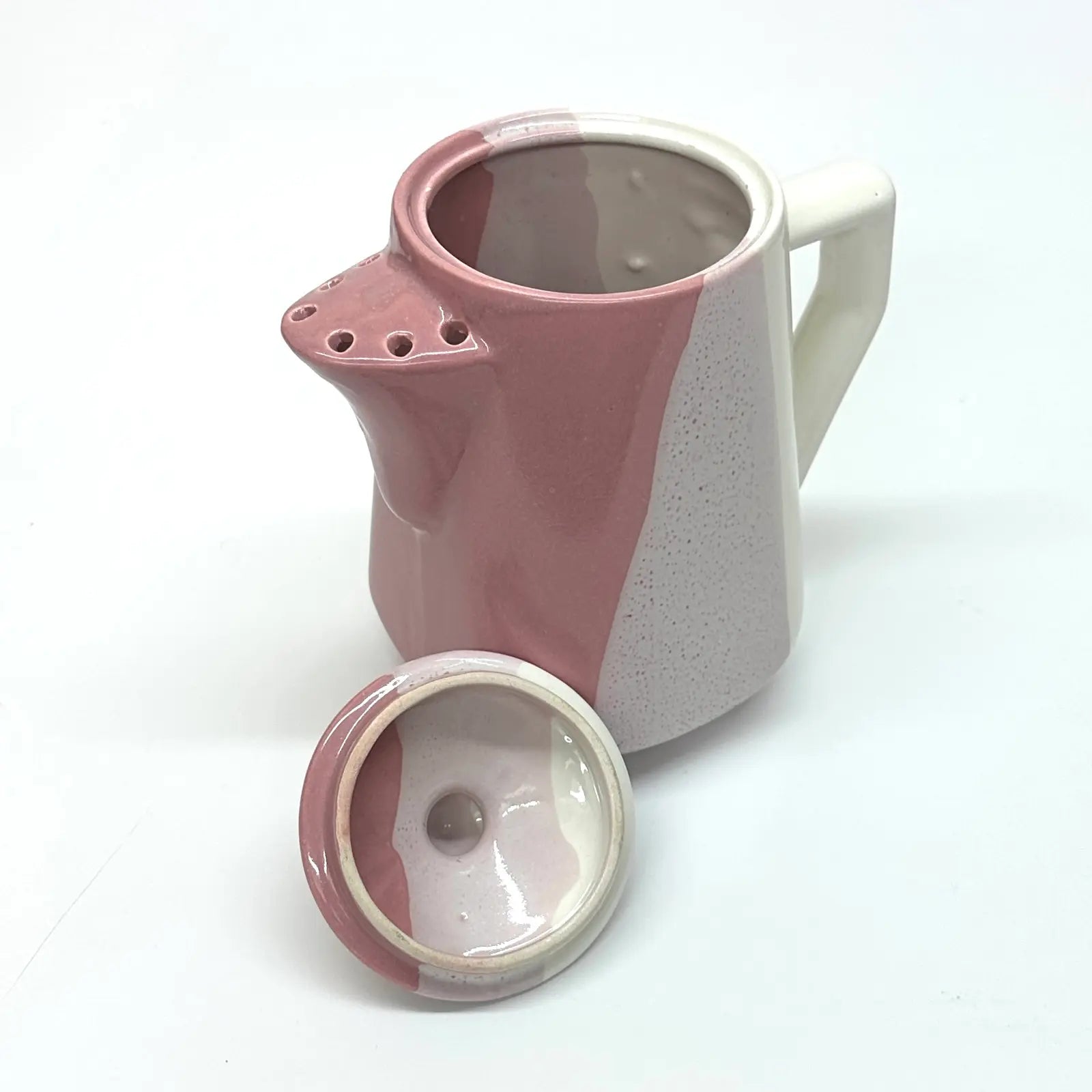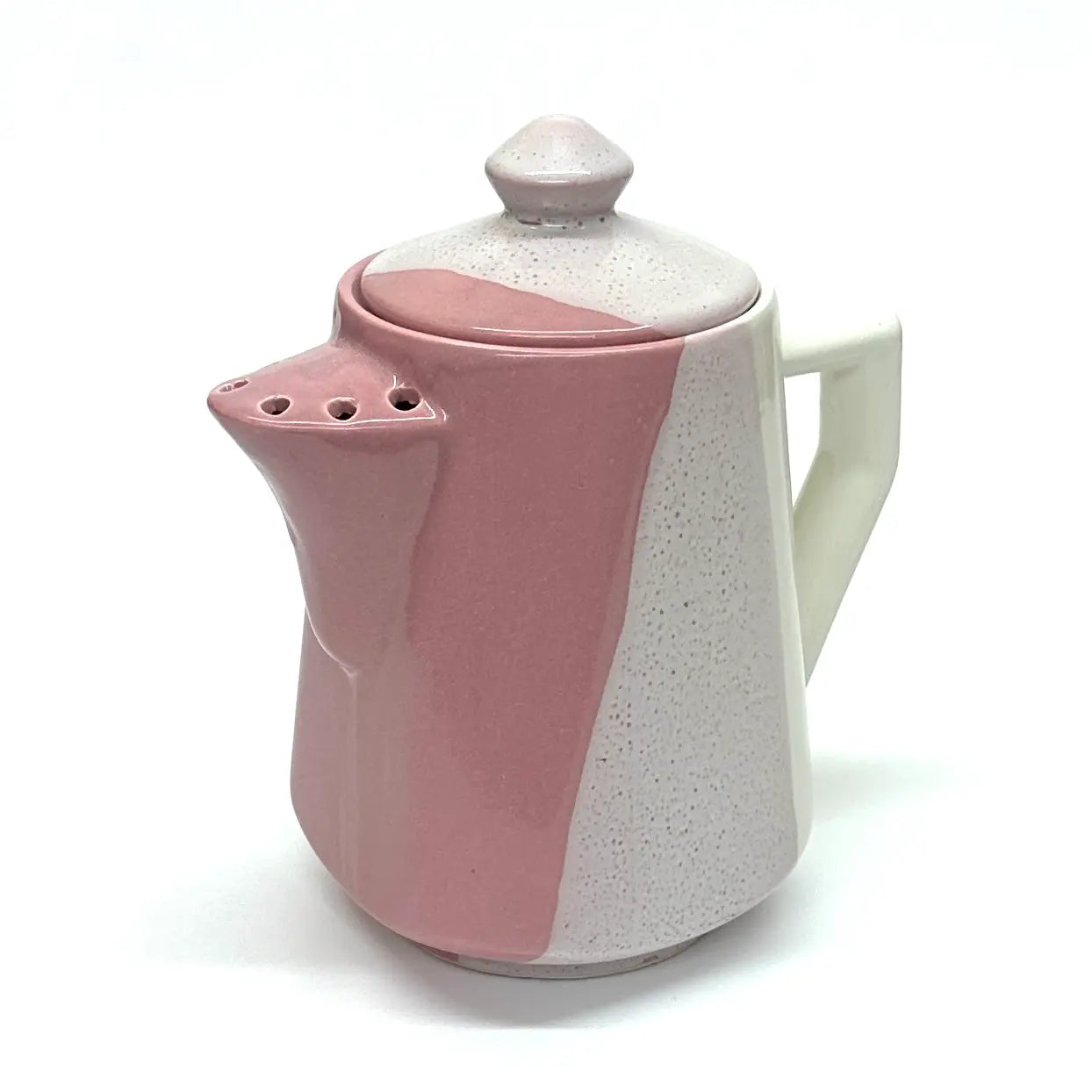 - Tall rose pink and white Luna Pottery teapot with sifting spout (tiny manufacturer's defect on the rim where the glaze is missing). 7.5"W x 8.25"H