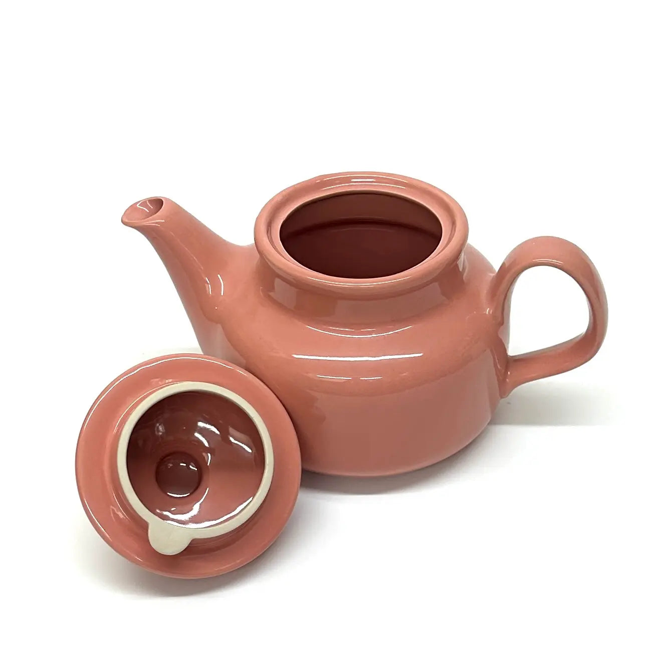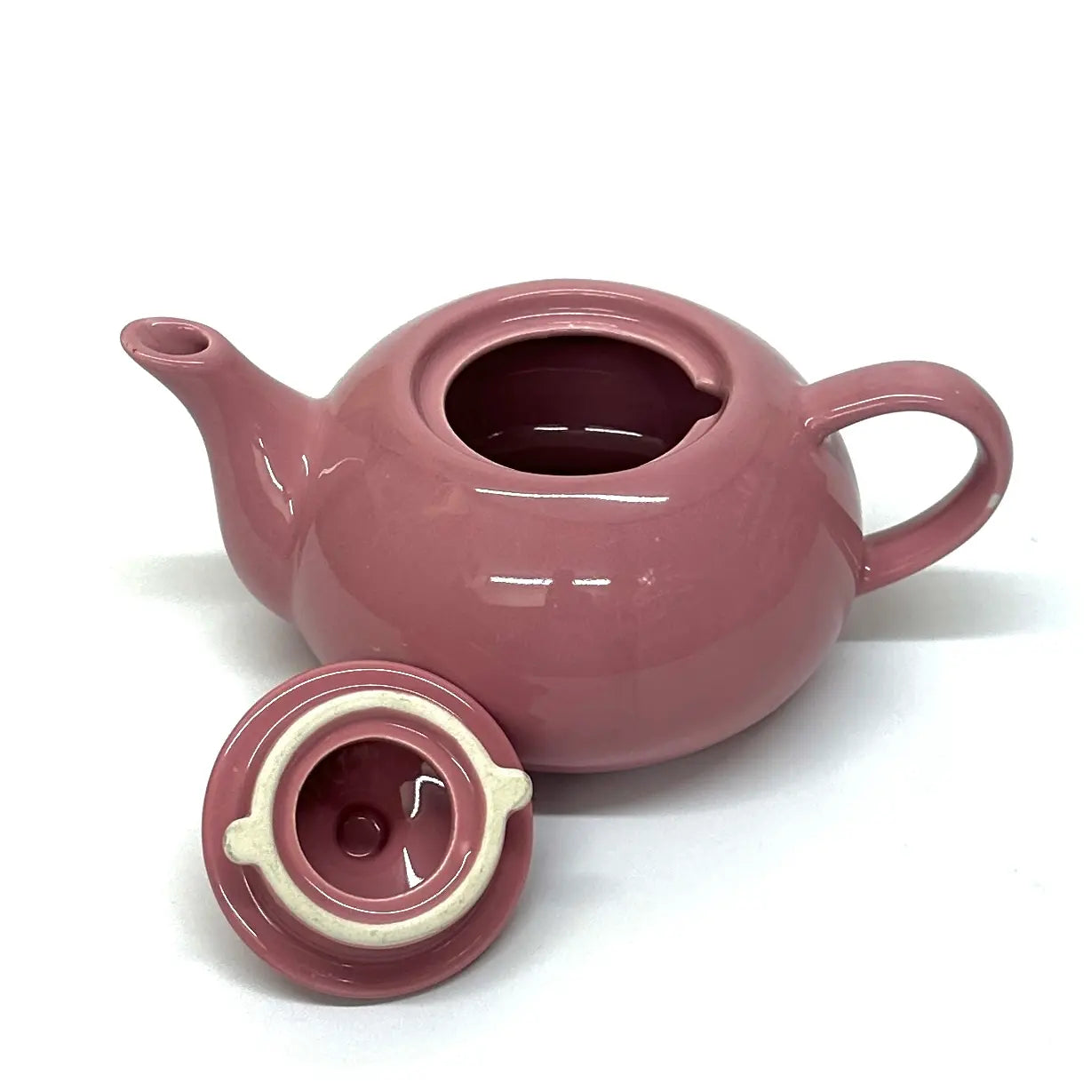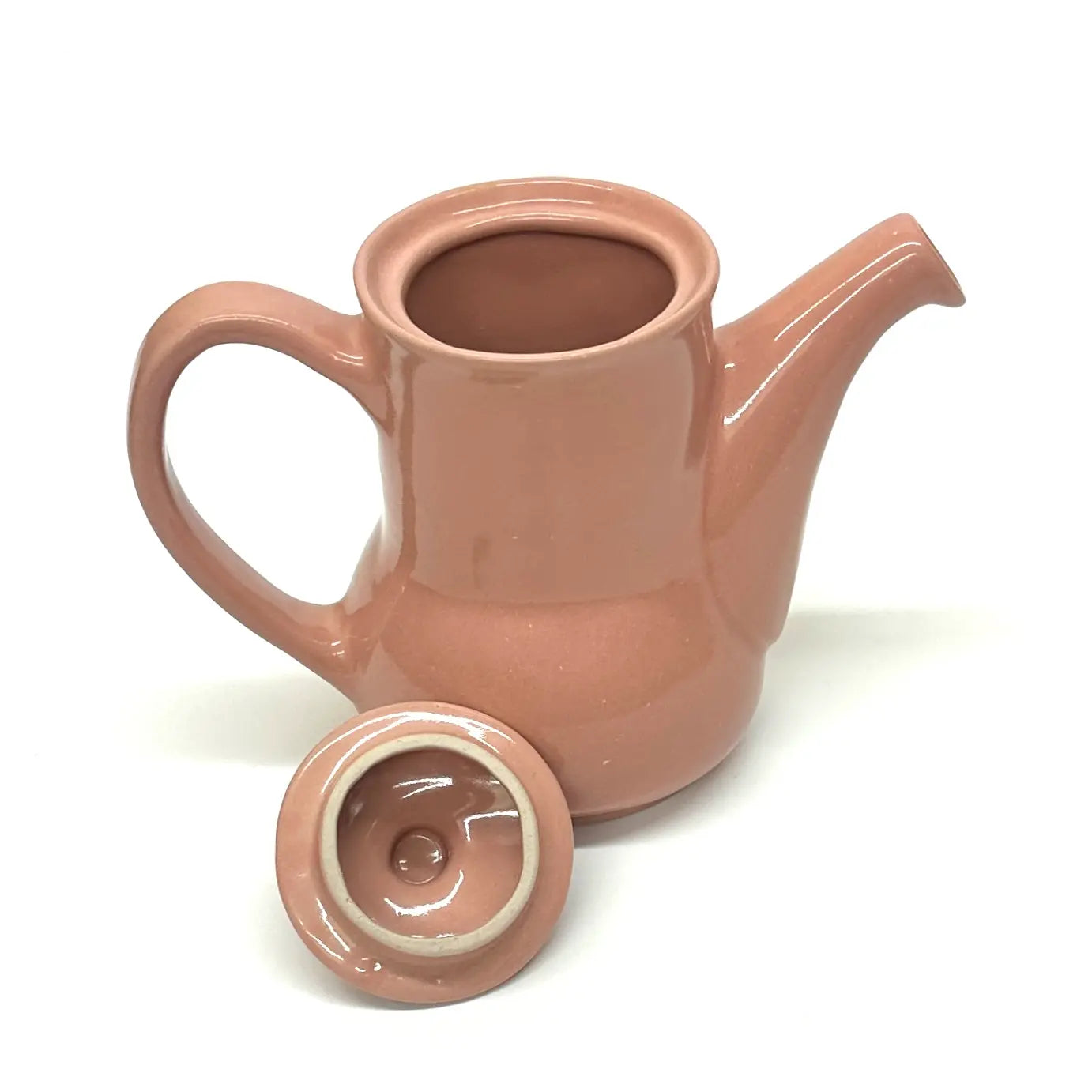 - Tall rose pink and white Luna Pottery teapot with sifting spout (tiny manufacturer's defect on the rim where the glaze is missing). 7.5"W x 8.25"H