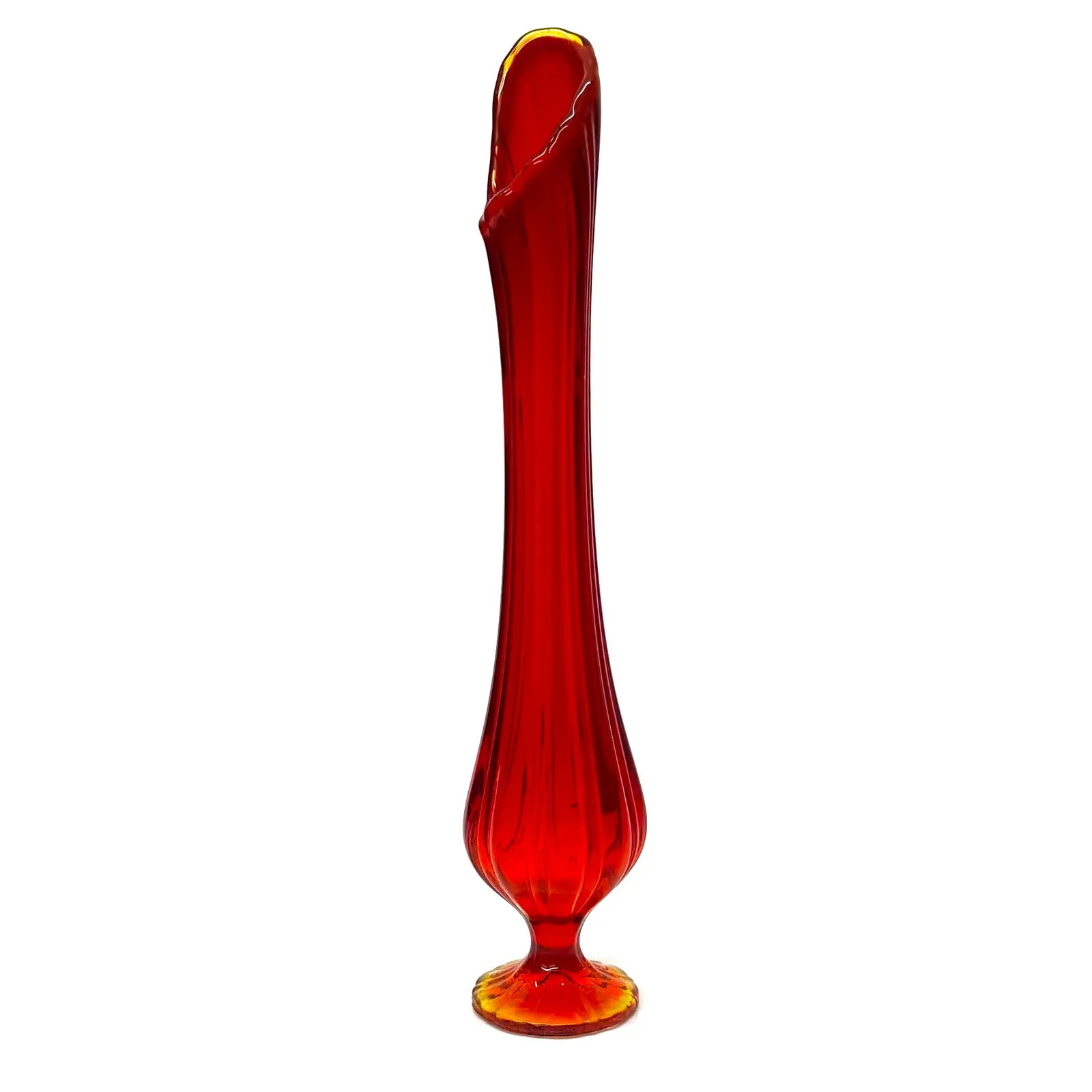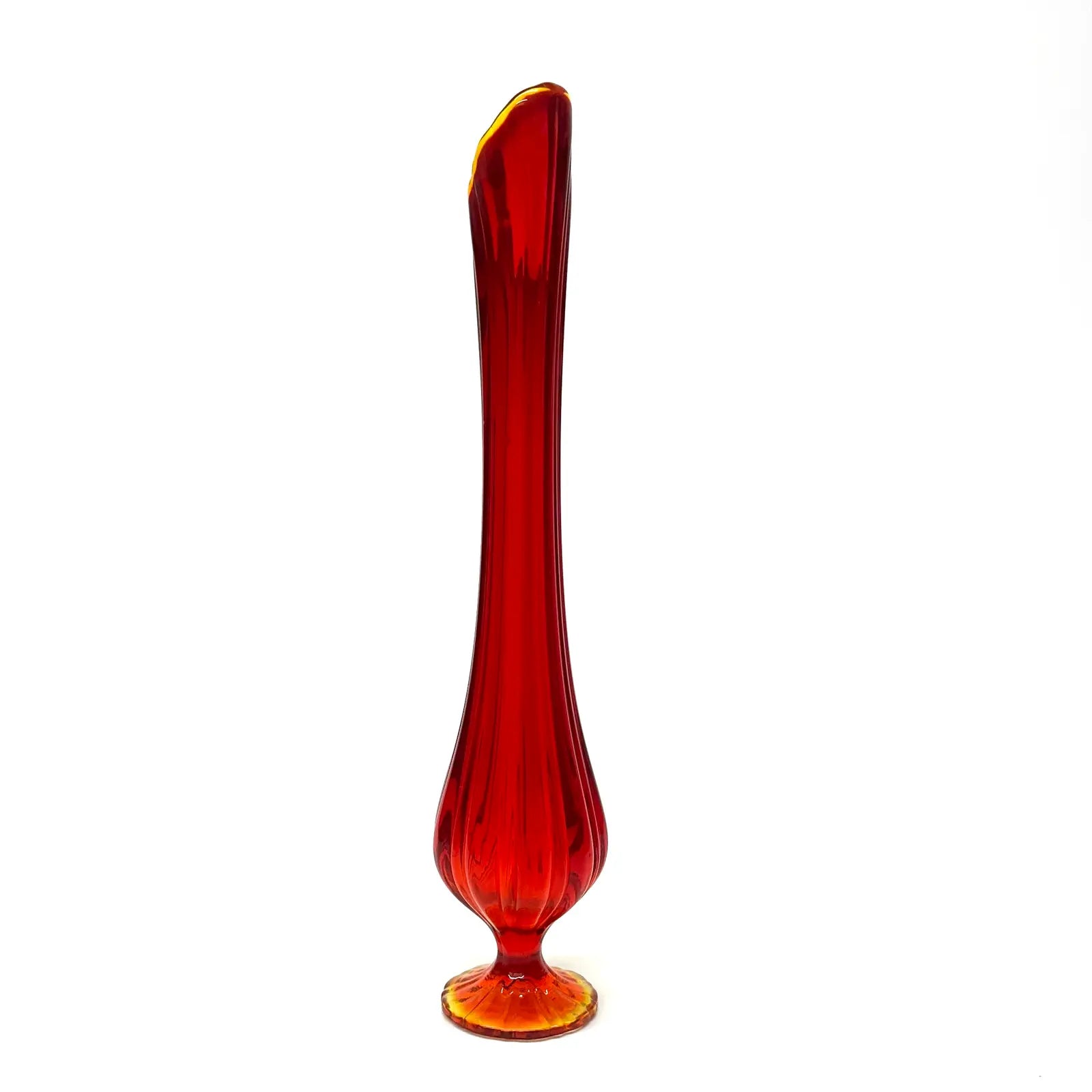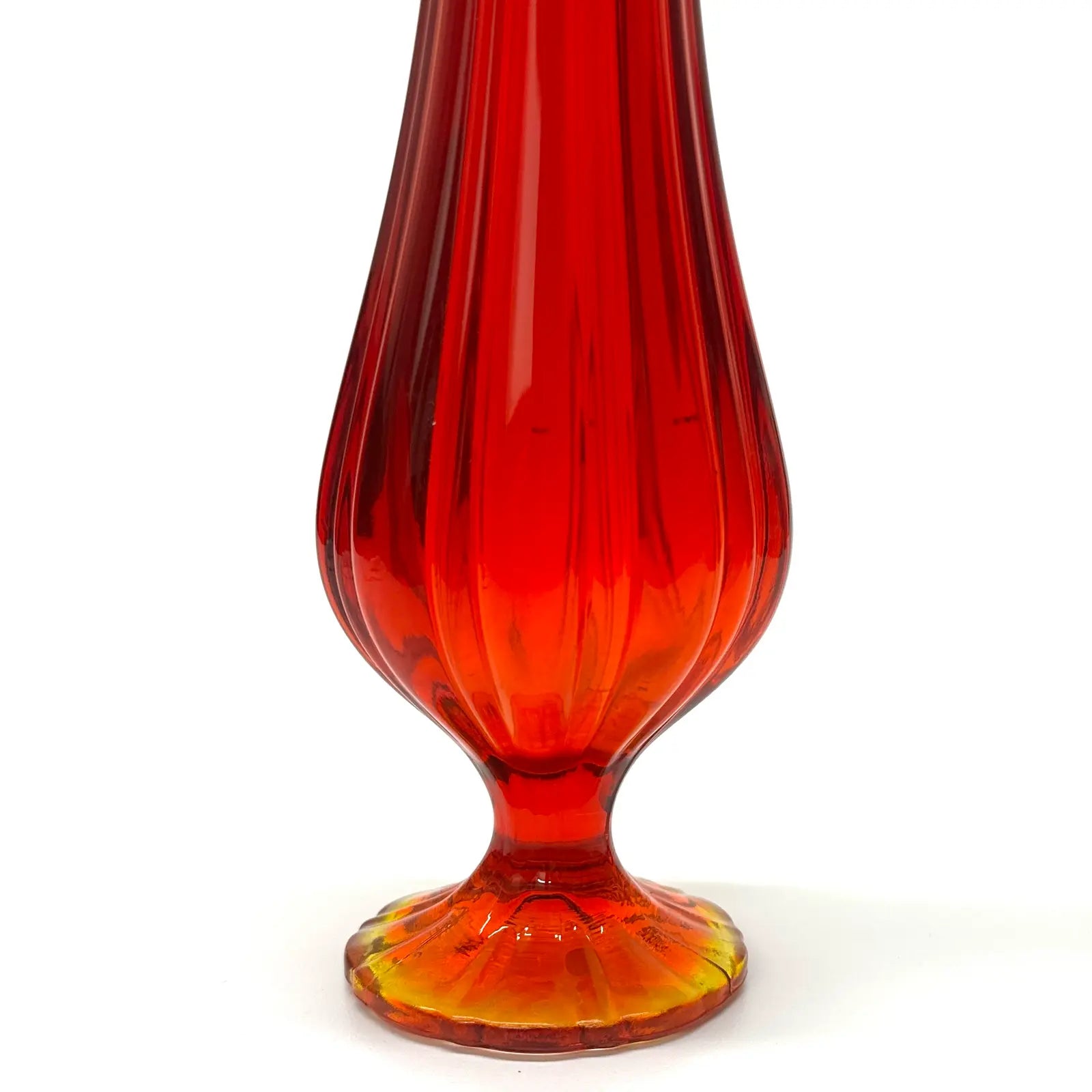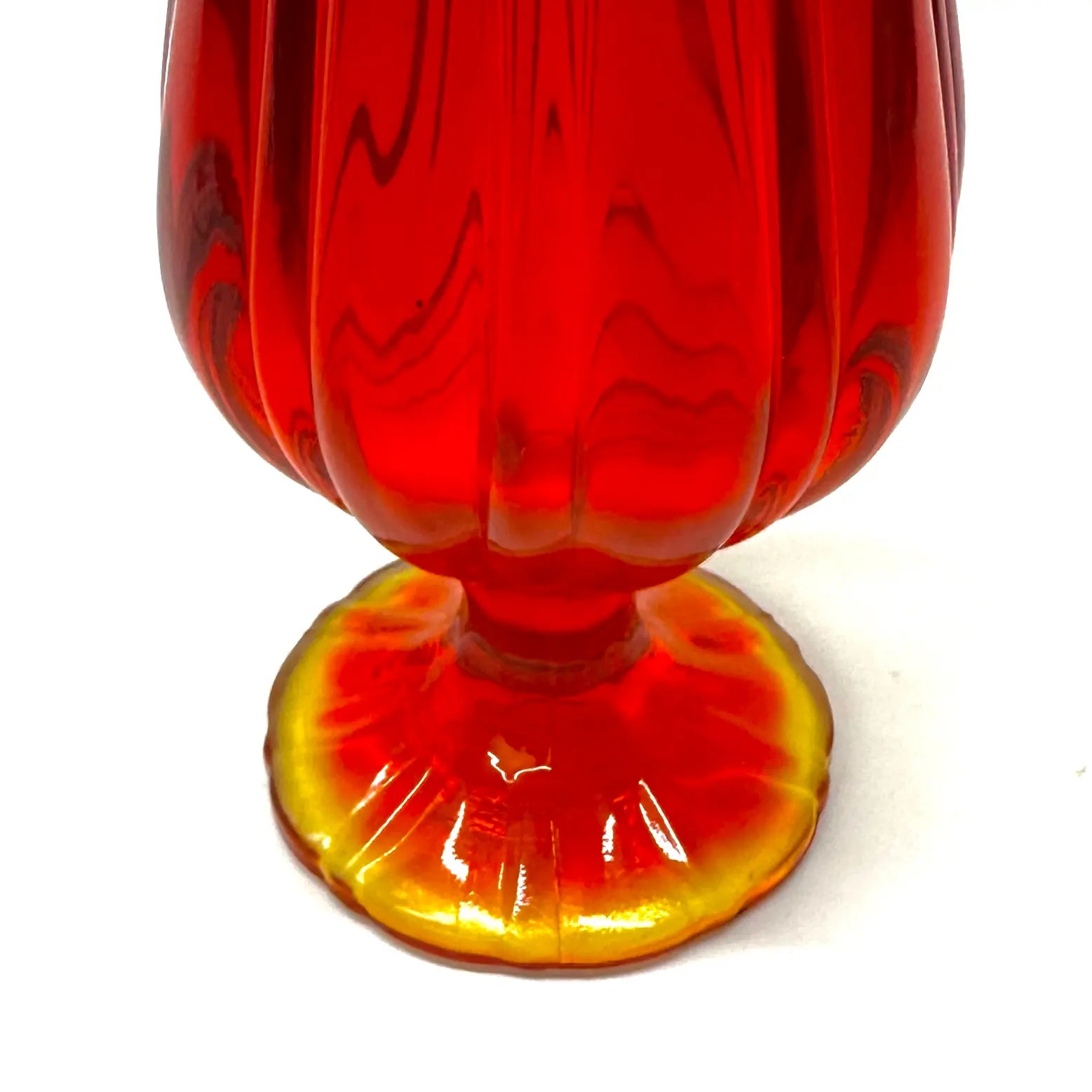 This is a beautiful Amberina, amber and red Viking Glass "Swung Vase" made circa 1950.