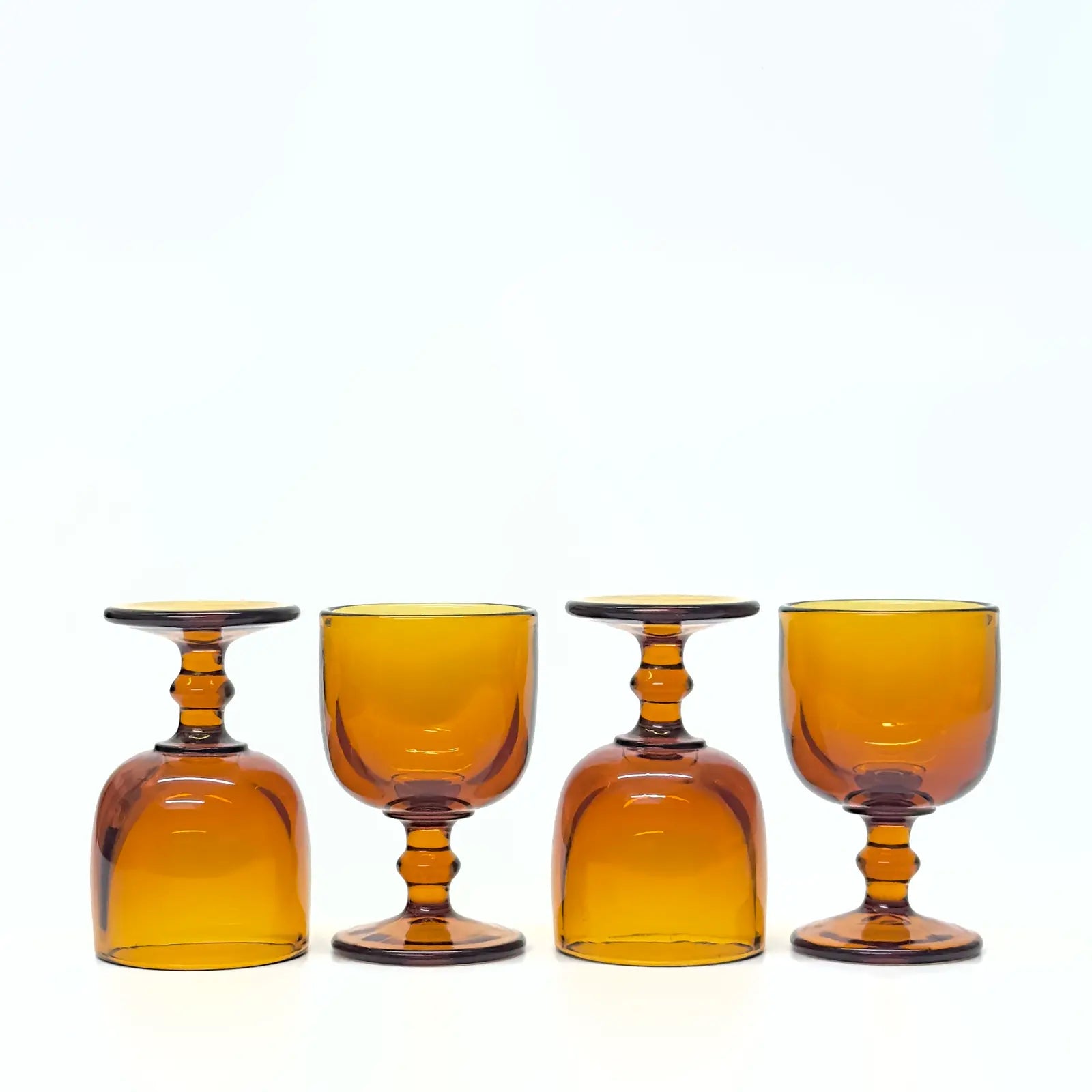 This a gorgeous set of Carlo Moretti-style chunky translucent amber wine goblets with a curved stem.