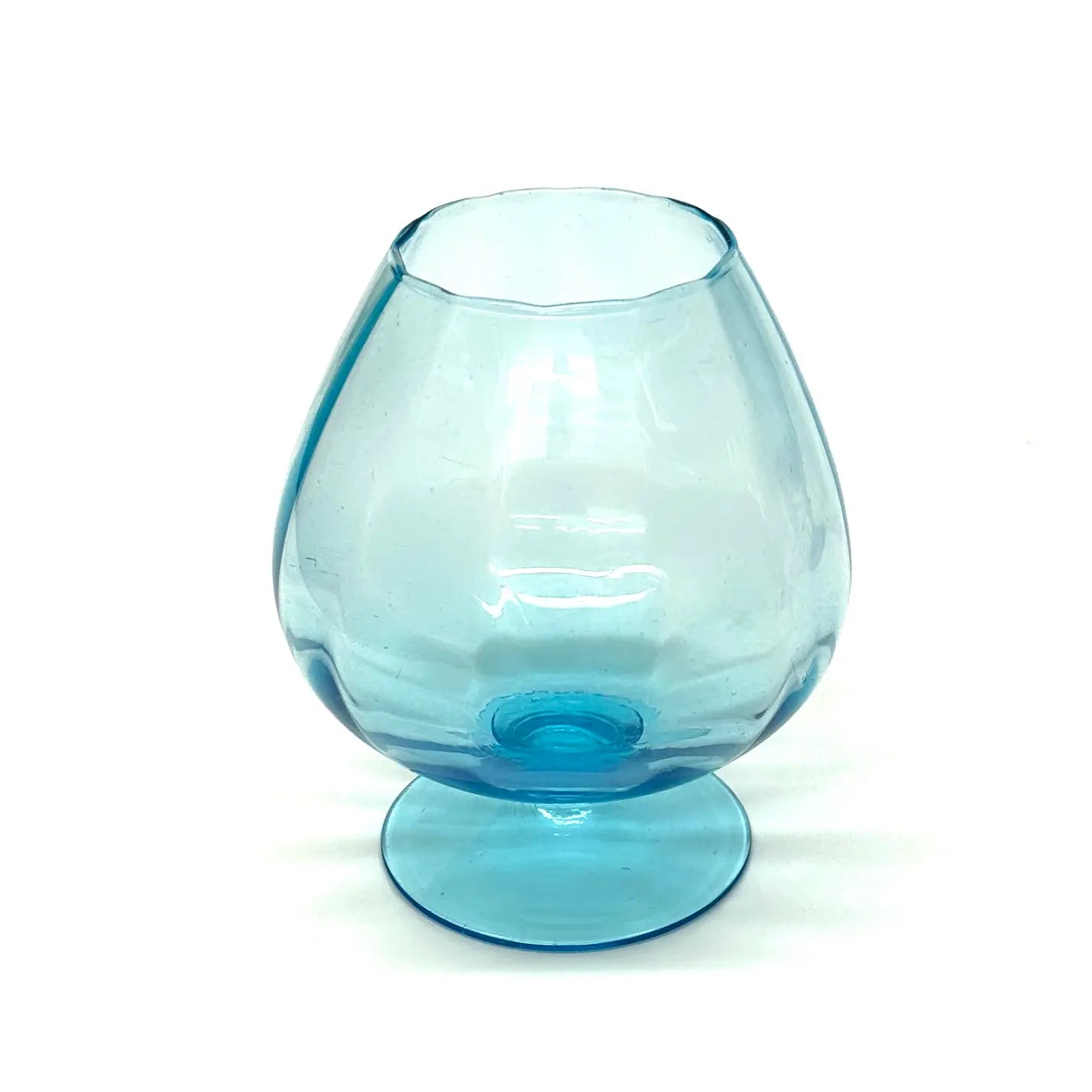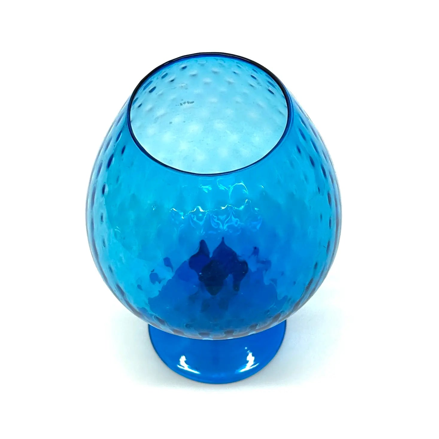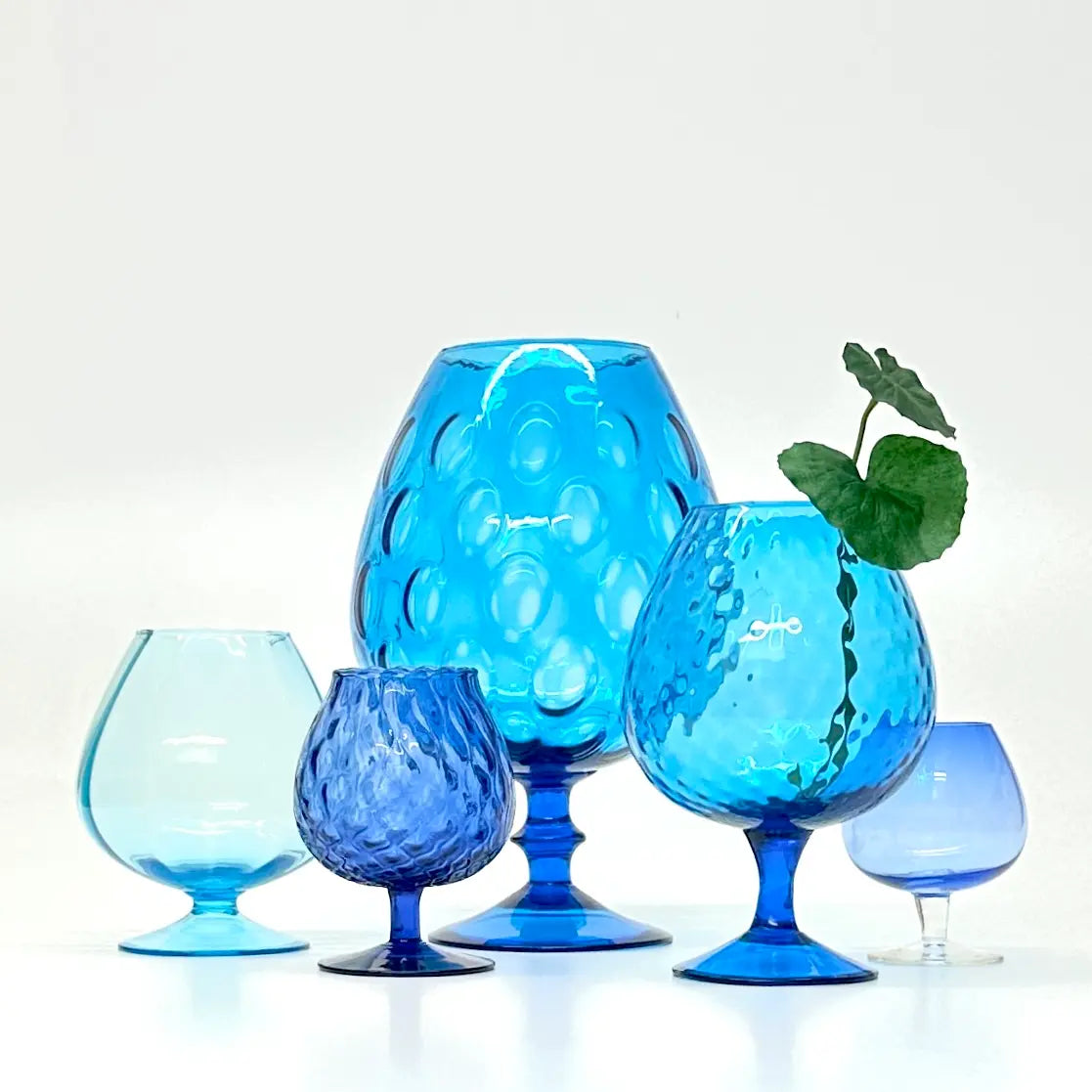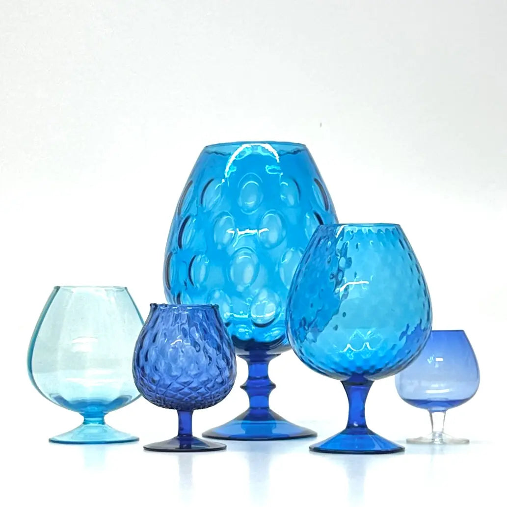 A stunning set of assorted stemmed brandy balloon vases, primarily Empoli glass, crafted in Italy during the mid-20th century. Their vibrant turquoise shades bring a striking touch of vintage elegance to any space.
