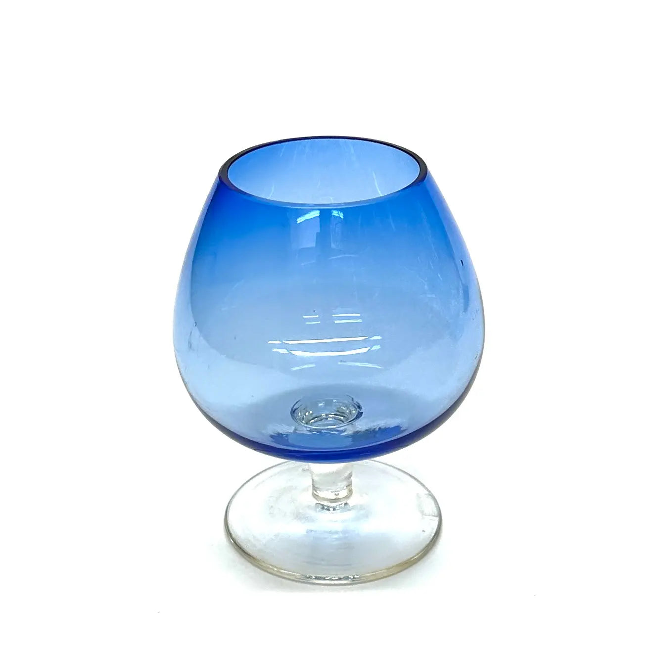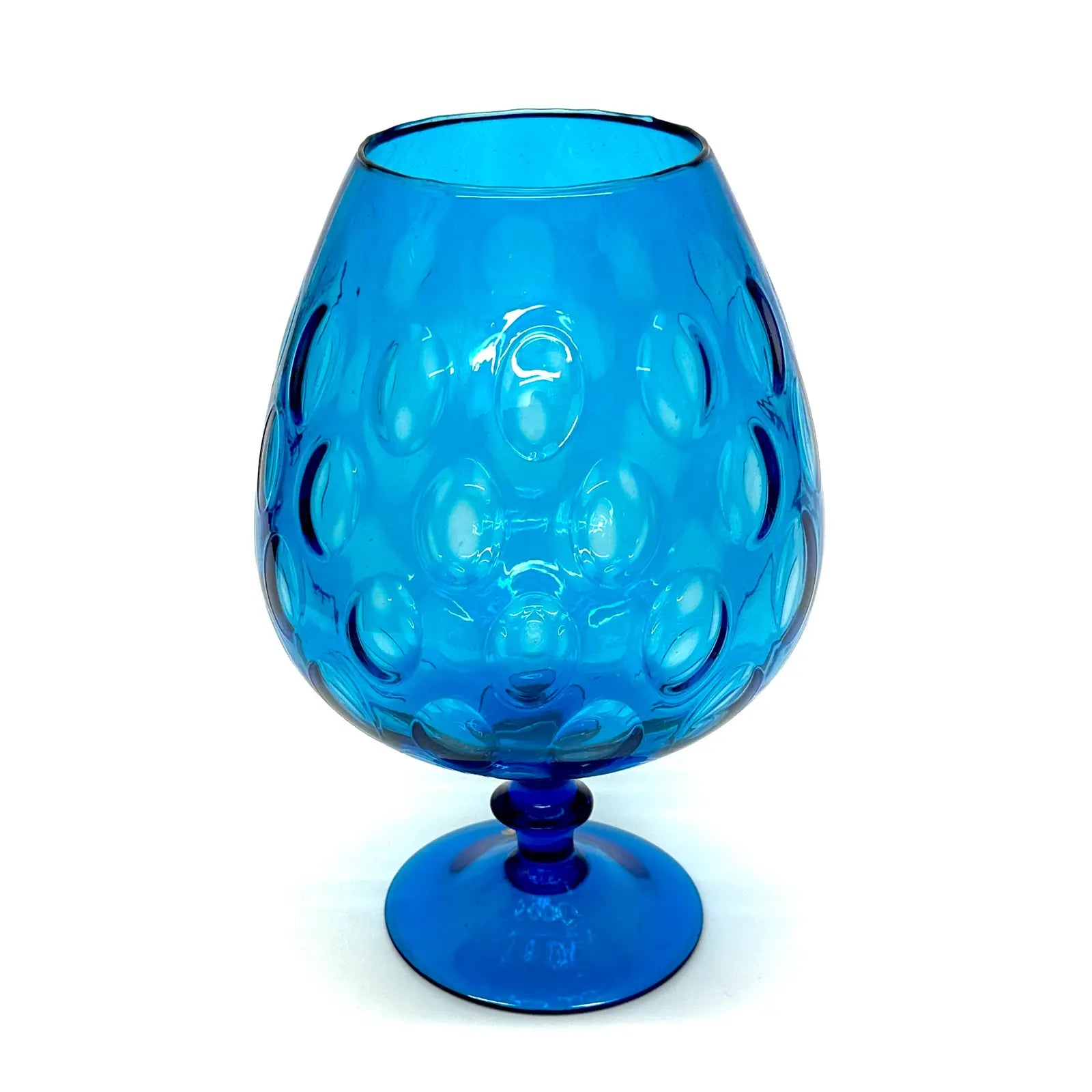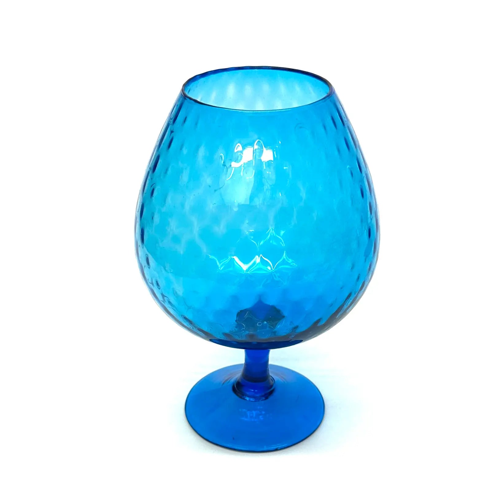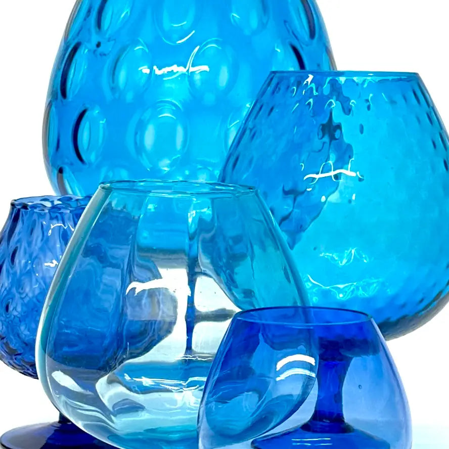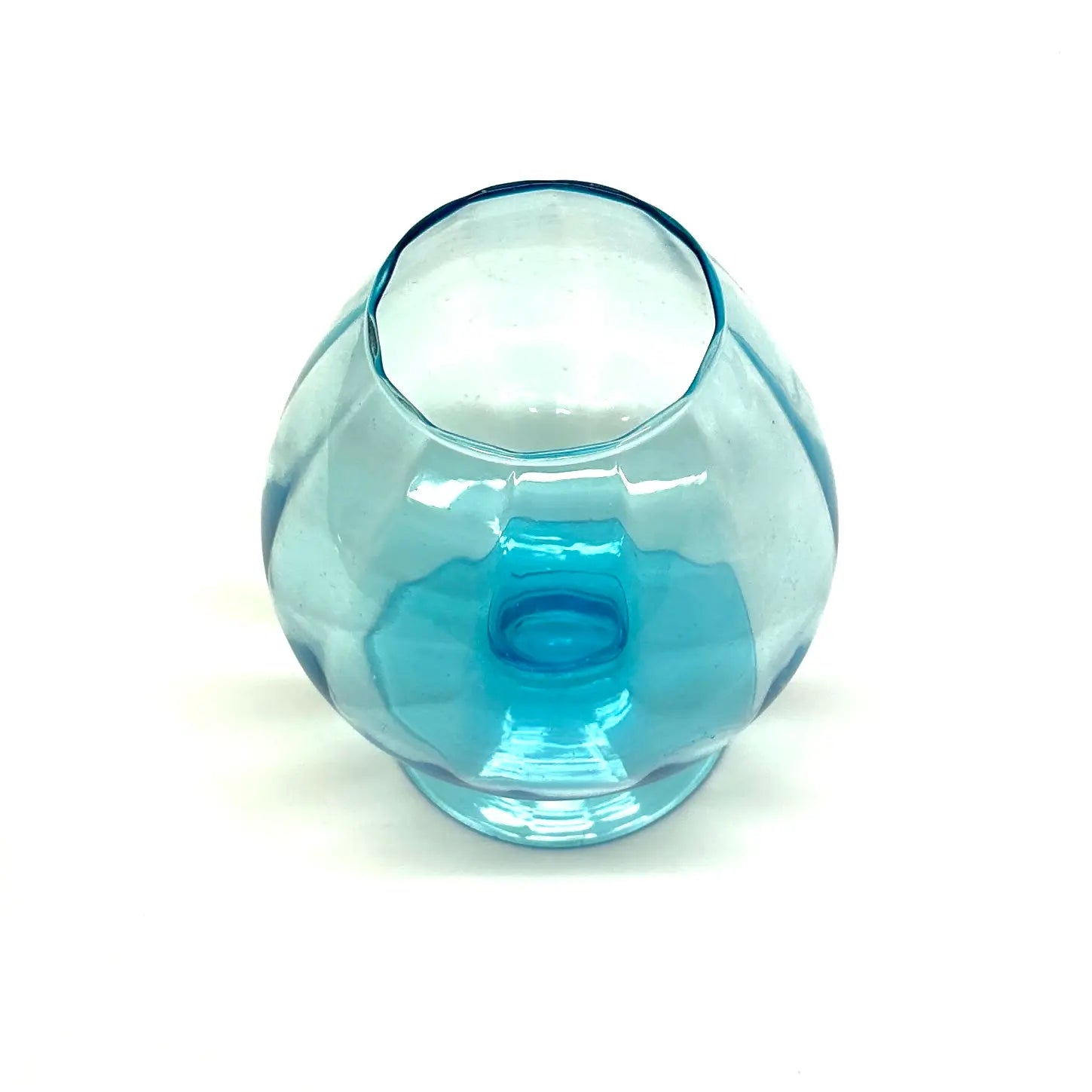 A stunning set of assorted stemmed brandy balloon vases, primarily Empoli glass, crafted in Italy during the mid-20th century. Their vibrant turquoise shades bring a striking touch of vintage elegance to any space.