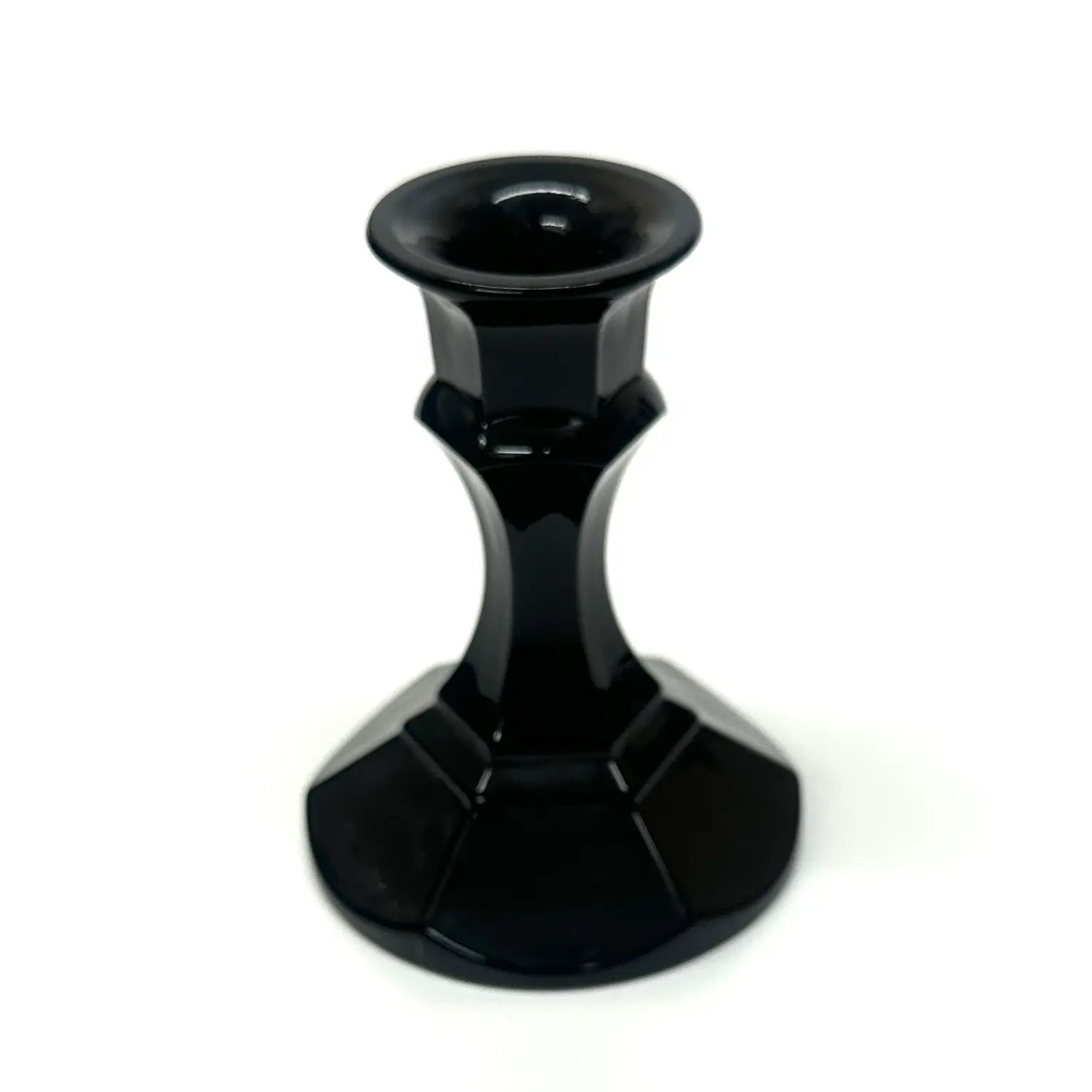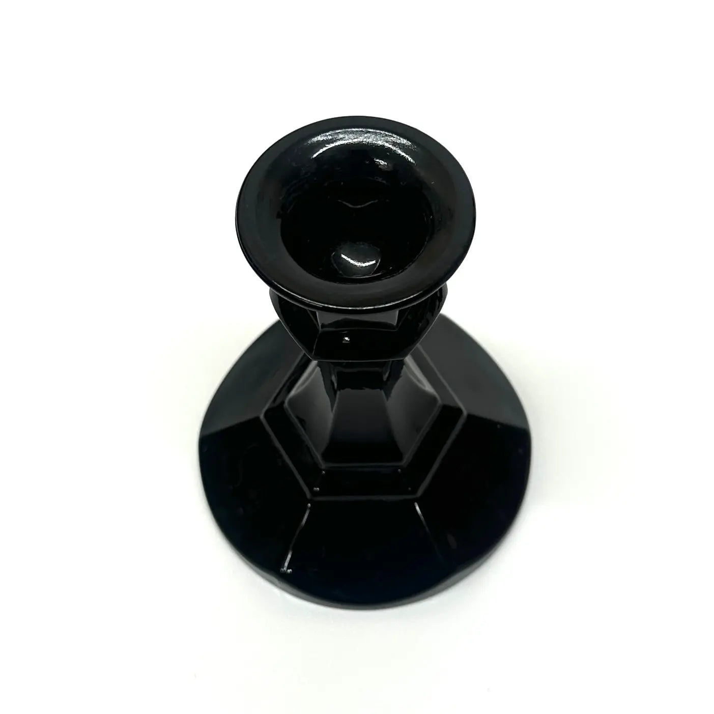 A stunning group of mixed faceted black glass and ceramic candle holders from the mid 20th century. Four of them are glass.