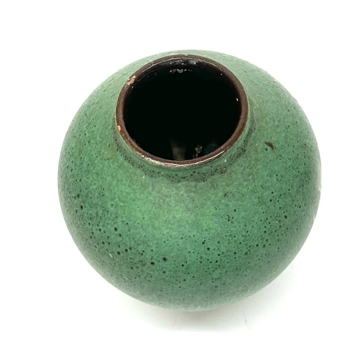 This is a stunning group of vintage matte mint green ceramic pottery vessels from the mid-20th century. Featuring Royal Haeger and W. German pieces. In excellent vintage condition, the medium-height vase has a couple of small chips on the rim.