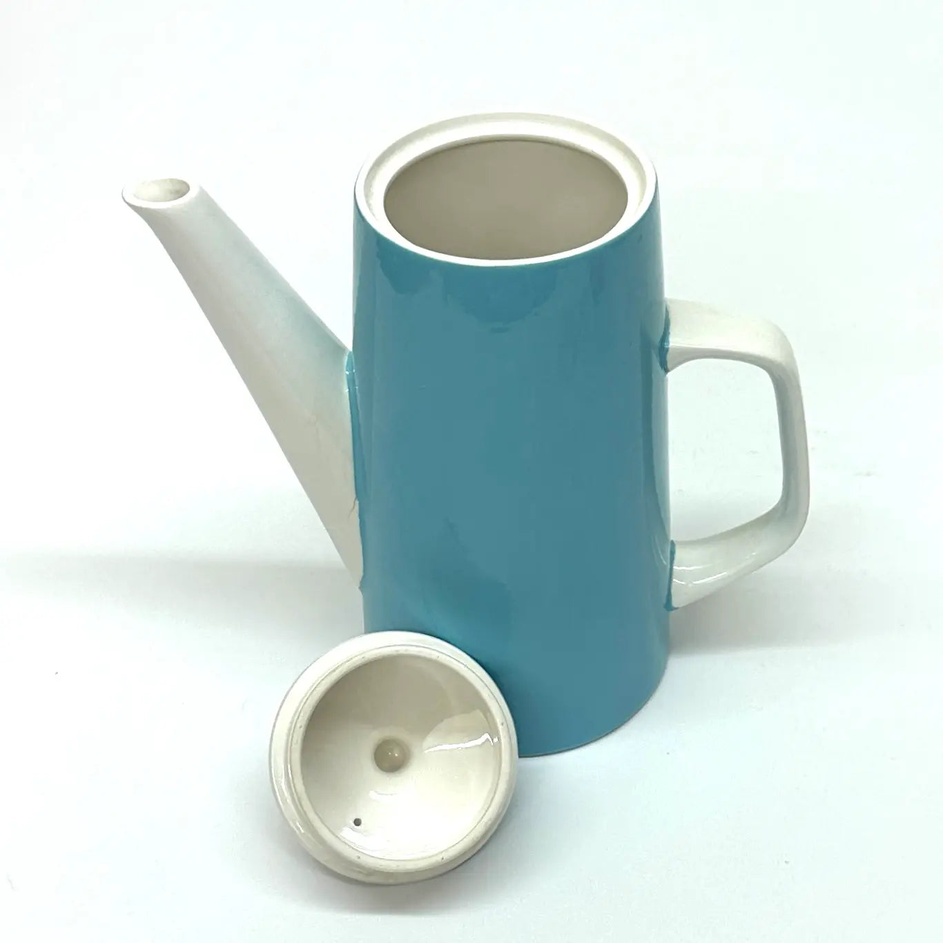 - Sky blue Cera-stone mid-century ceramic teapot with white details by Mikasa (minor chip in the glaze on the spout). 8.5"W x 9.25"H