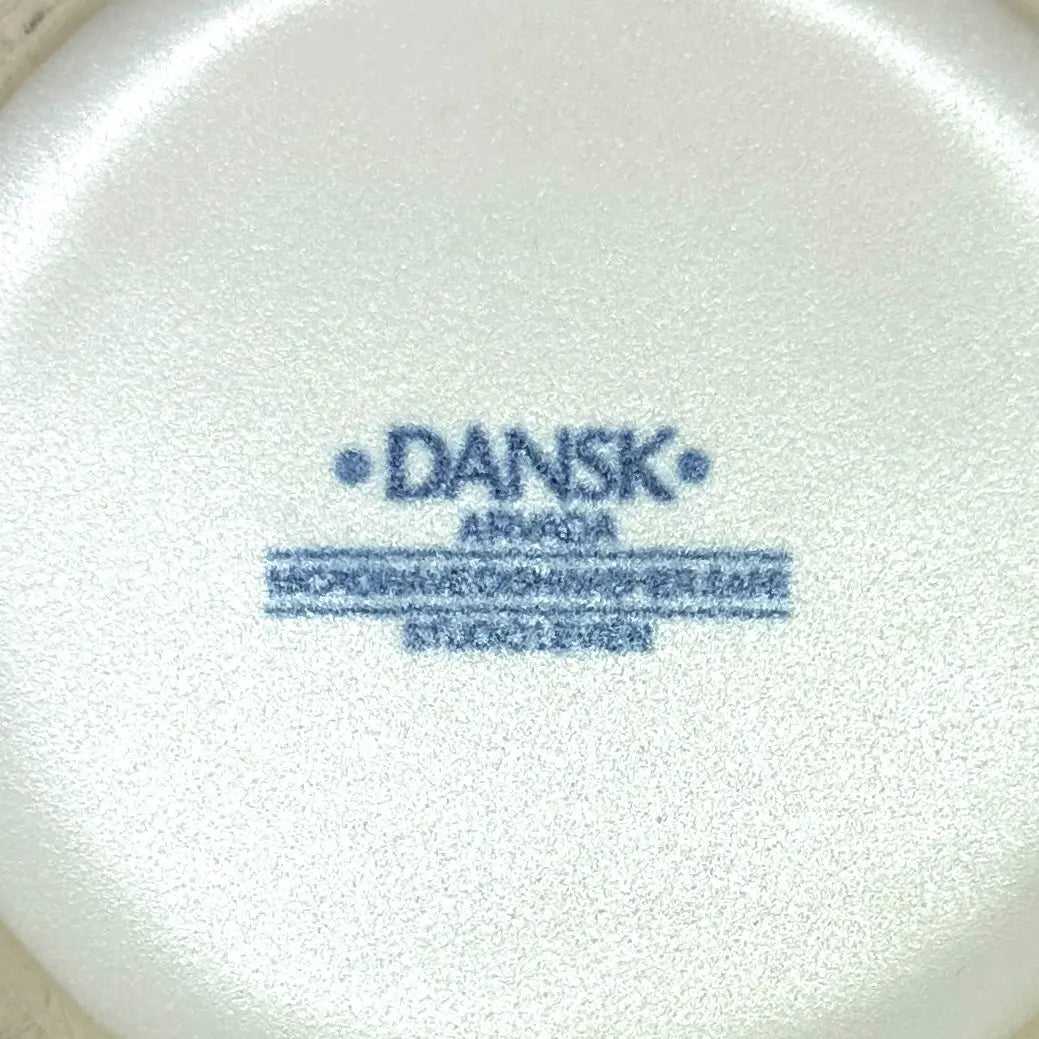 - Light blue and white, rounded Arvada Palm ceramic teapot by Dansk (minor chip on the spout). 9"W x 6"H