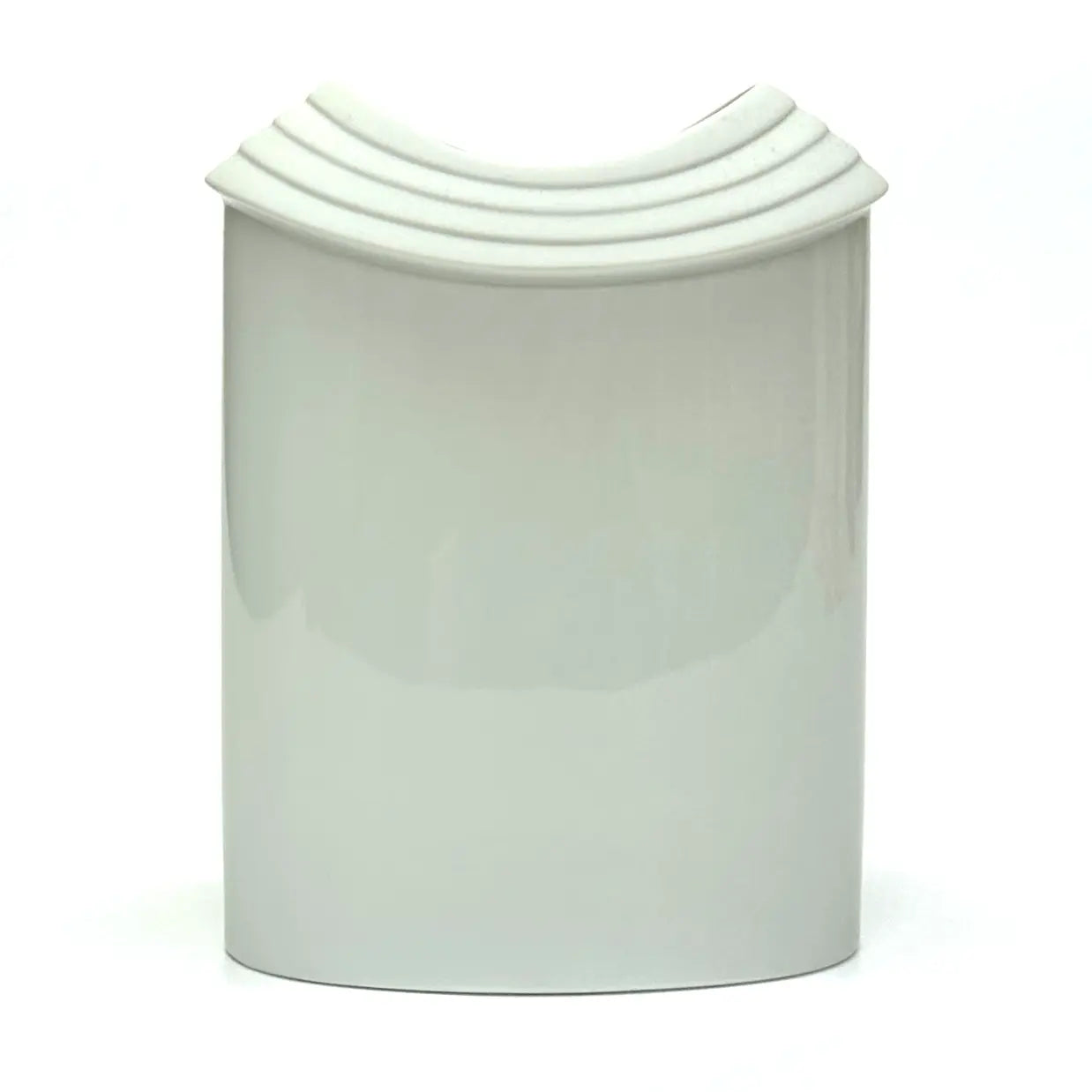 A gorgeous and rare mid-century white porcelain vase by James Kirkwood for Rosenthal Studio Line. This striking four-tier design combines matte and gloss finishes, showcasing a sculptural, architectural silhouette with subtle Art Deco influence. In excellent vintage condition.