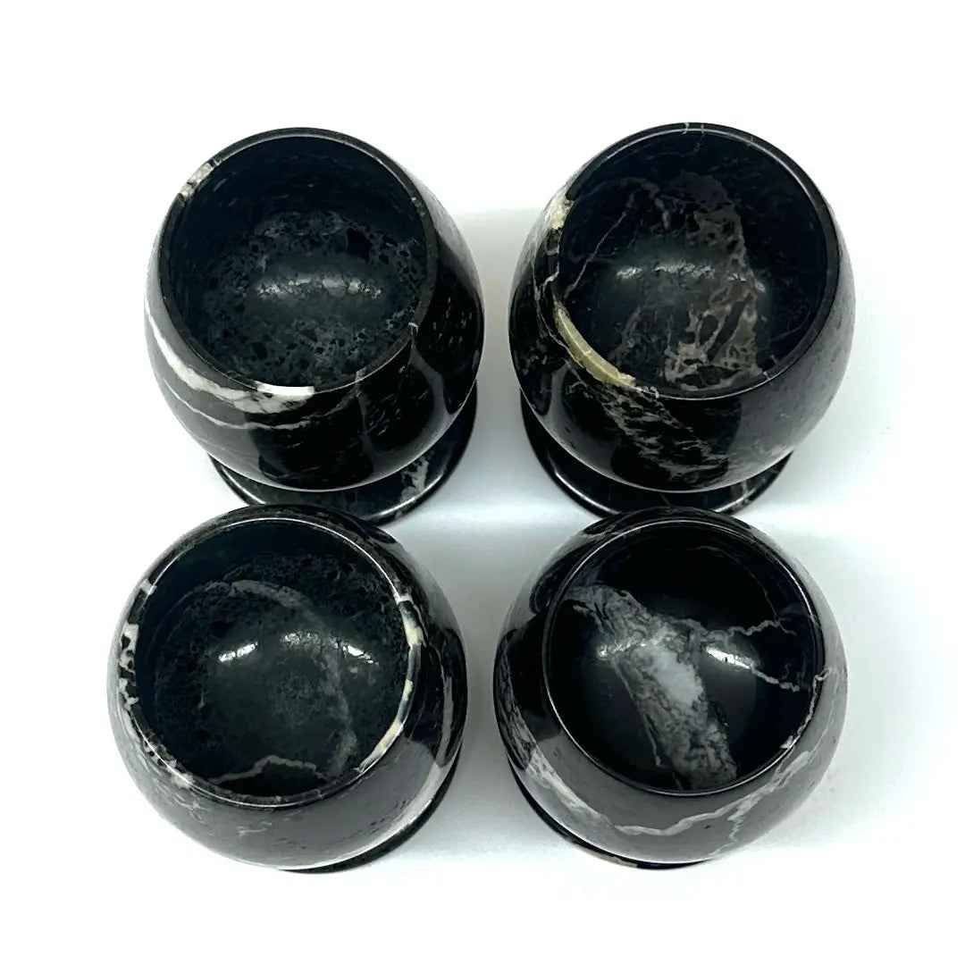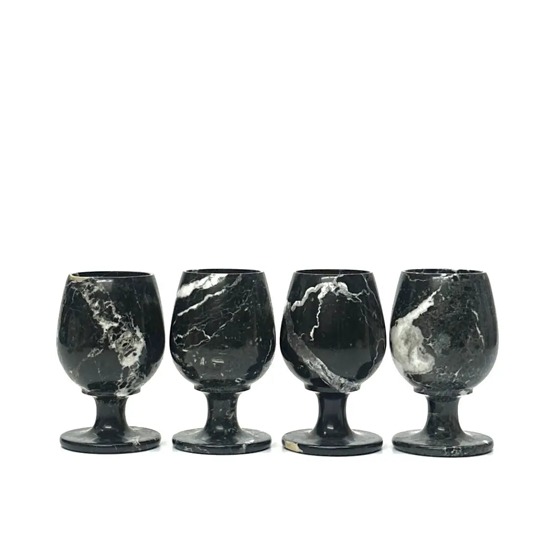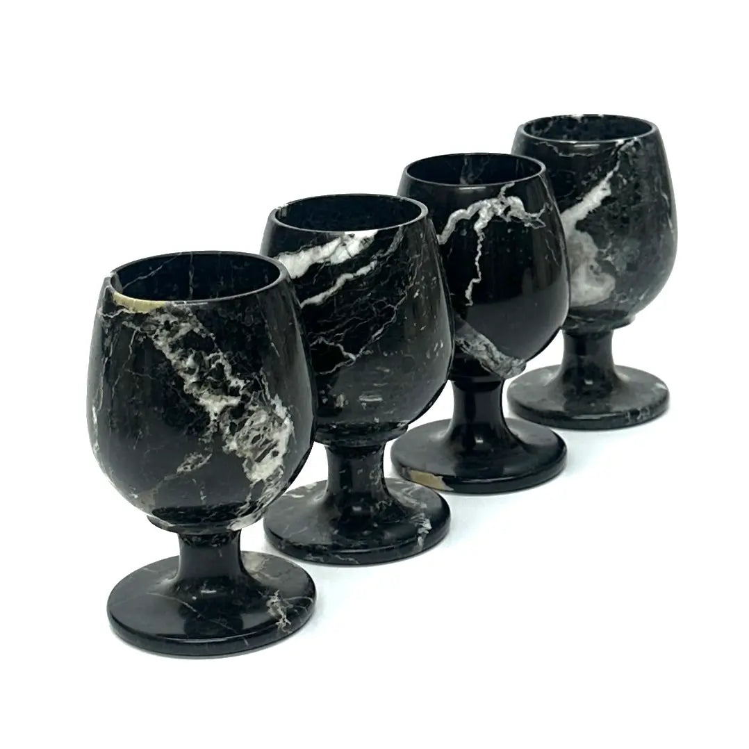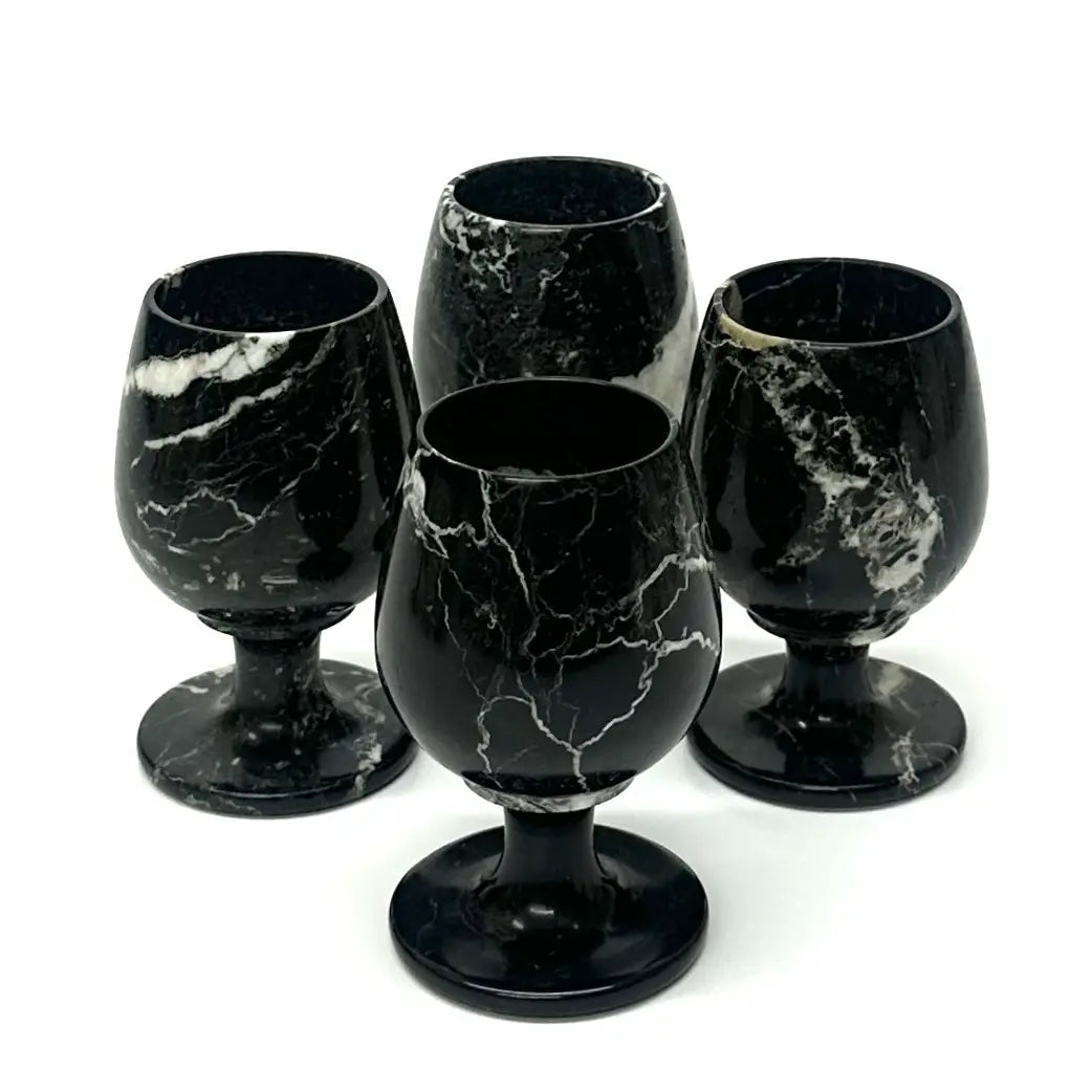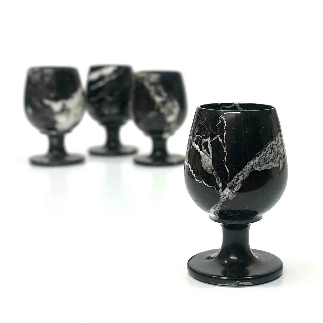 This stunning set of handmade black and white marble goblet wine glasses are the perfect addition to any Art Deco home.