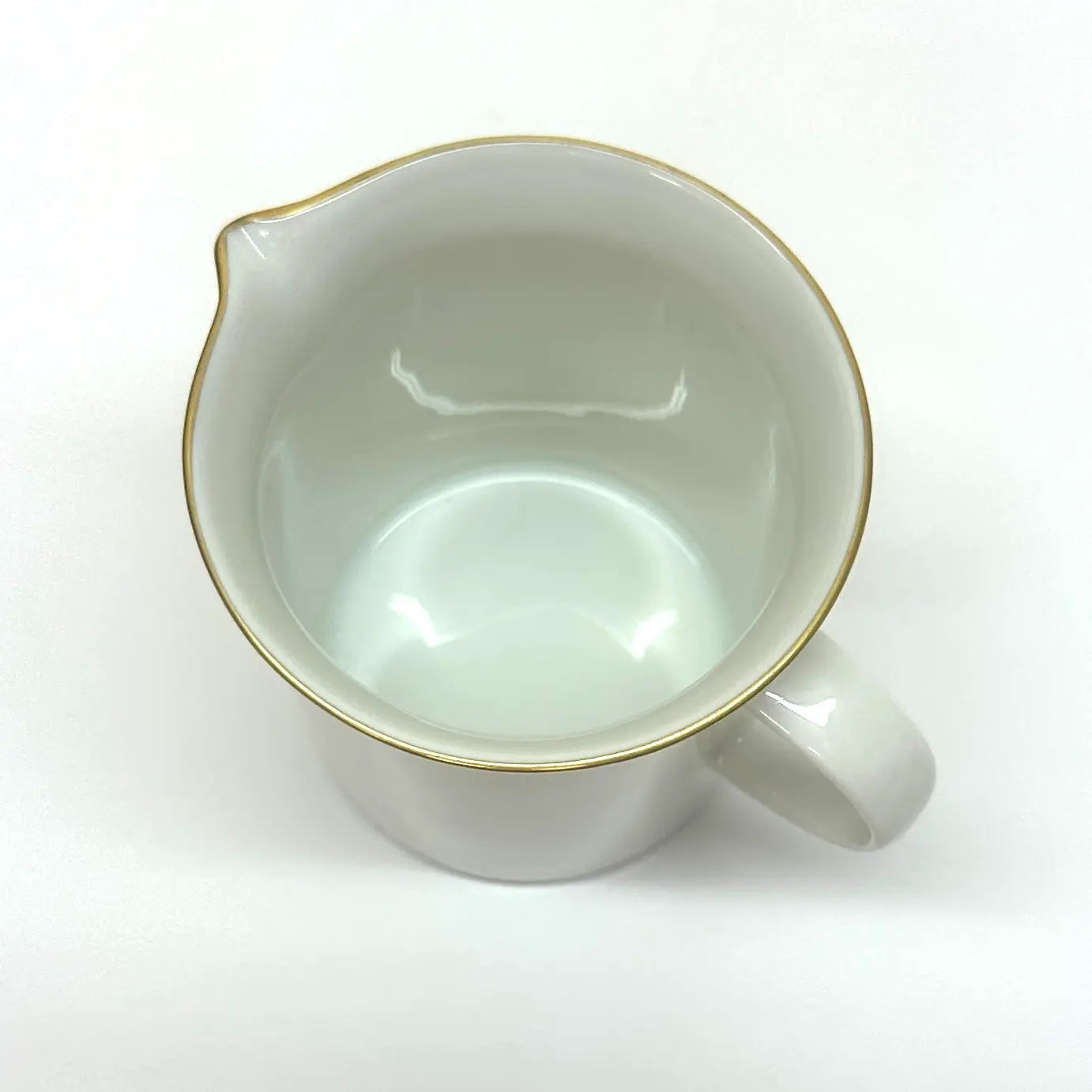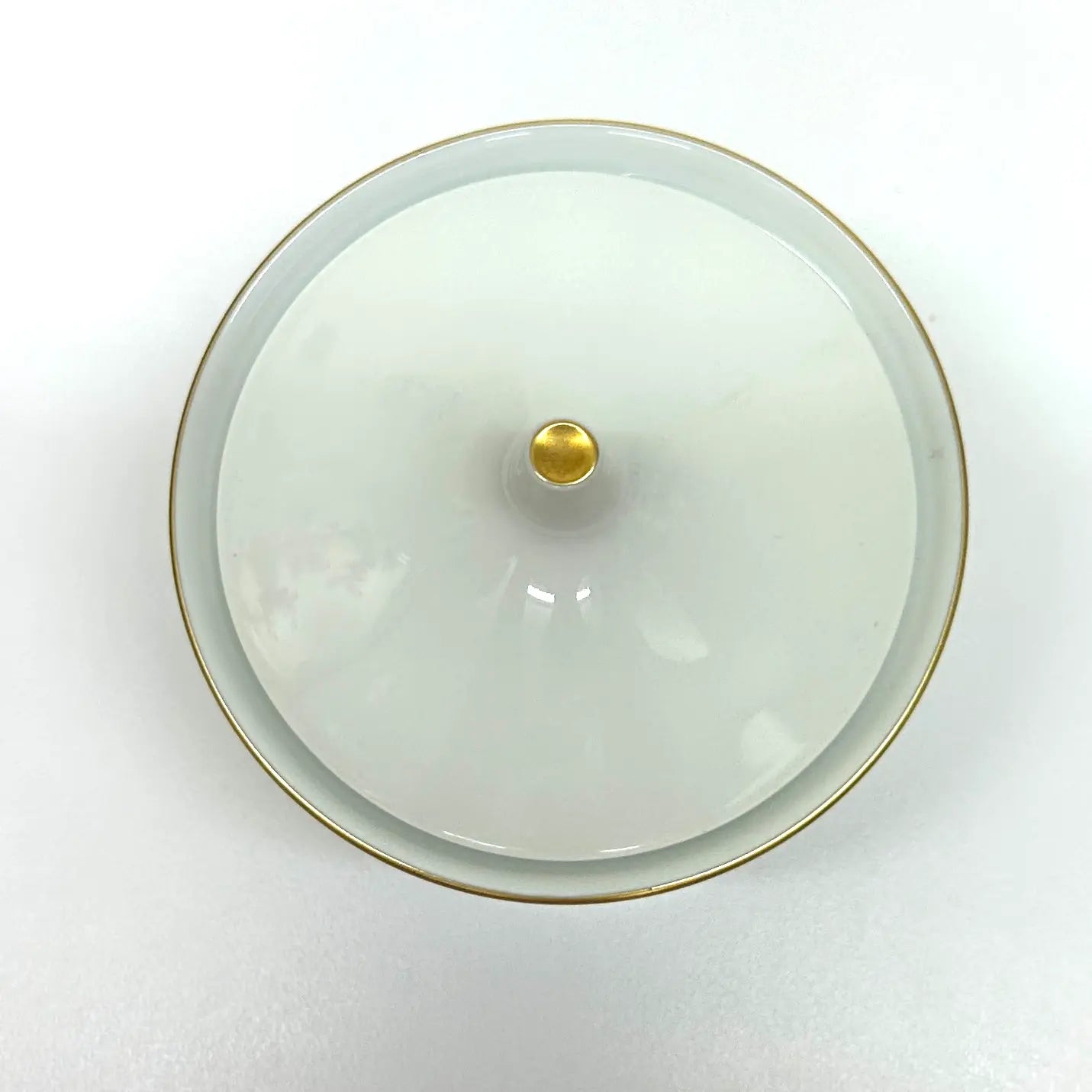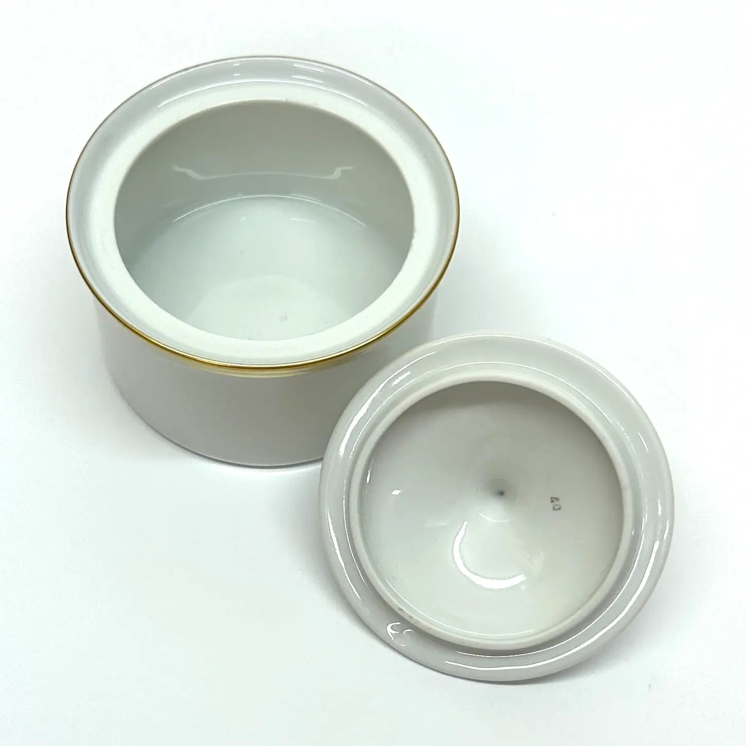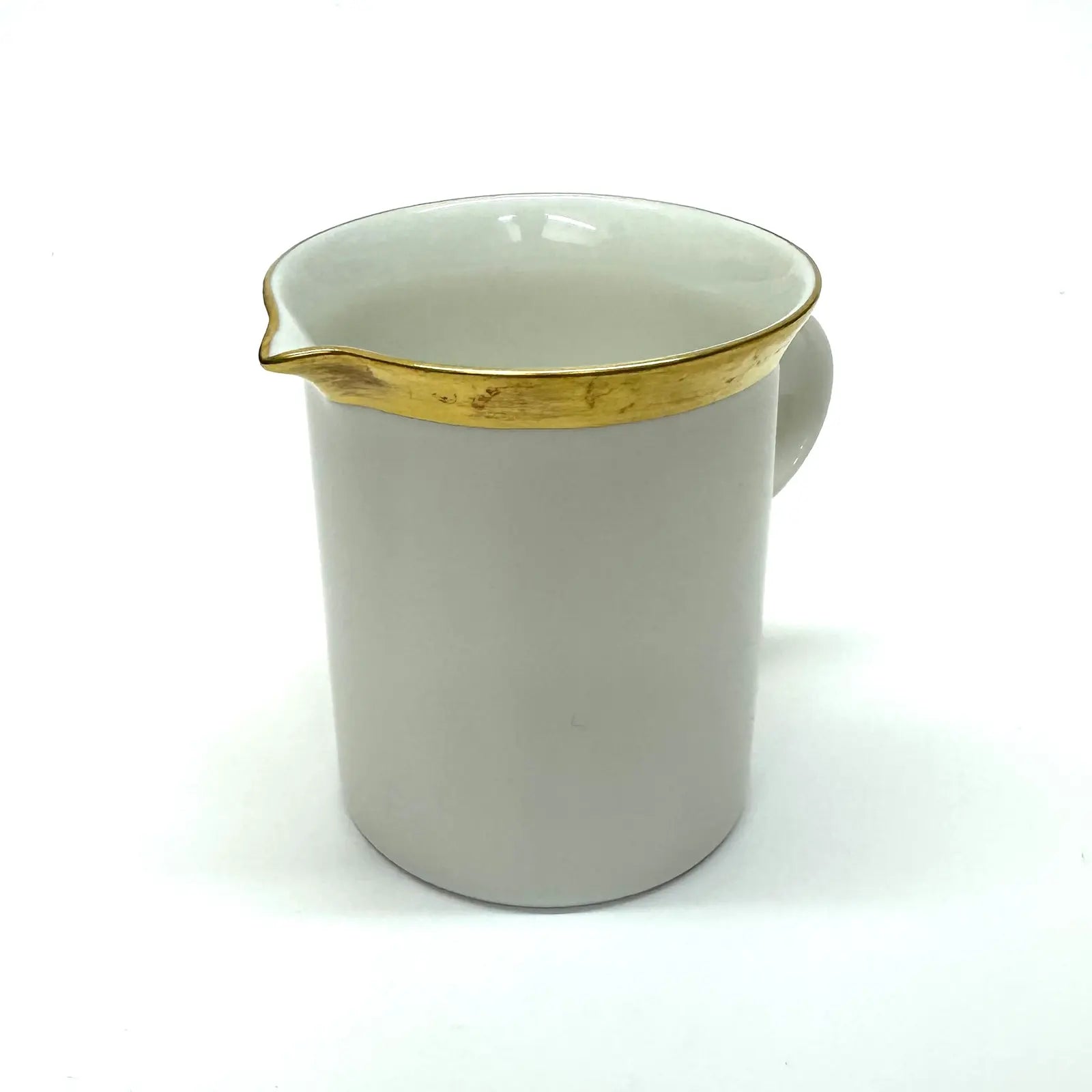 This vintage, delicate porcelain sugar bowl and creamer set, from the Kurfürstendamm design by Rosenthal, features a classic white base accented with elegant gold detailing. In excellent vintage condition, showing only slight patina on the gold trim.